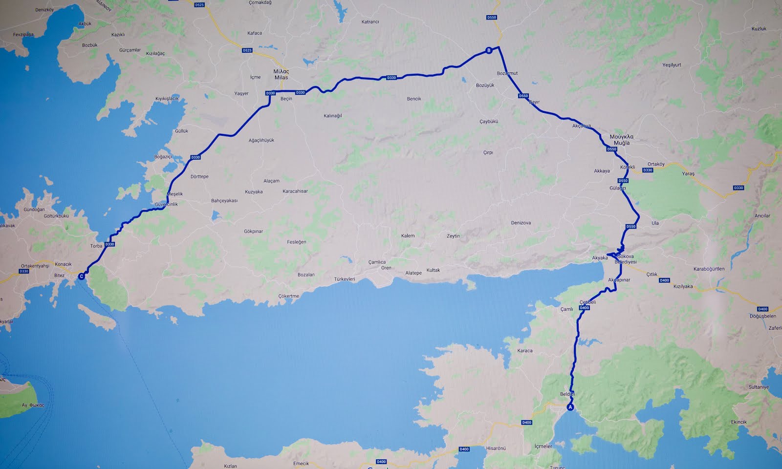 Μετά την μικρή μας περιήγηση, ξαναβγήκαμε στο δρόμο που ουσιαστικά ακολουθούσε, από μακρυά, την ακτογραμμή με θέα το πέλαγος και τις μικρές βραχονησίδες και με οδηγούς τις πινακίδες για Kussadasi, οδηγησα σε έναν δρόμο με σχετικά καλή ποιότητα ασφάλτου και άνετες στροφές που έκαναν την οδήγηση απολαυστική.