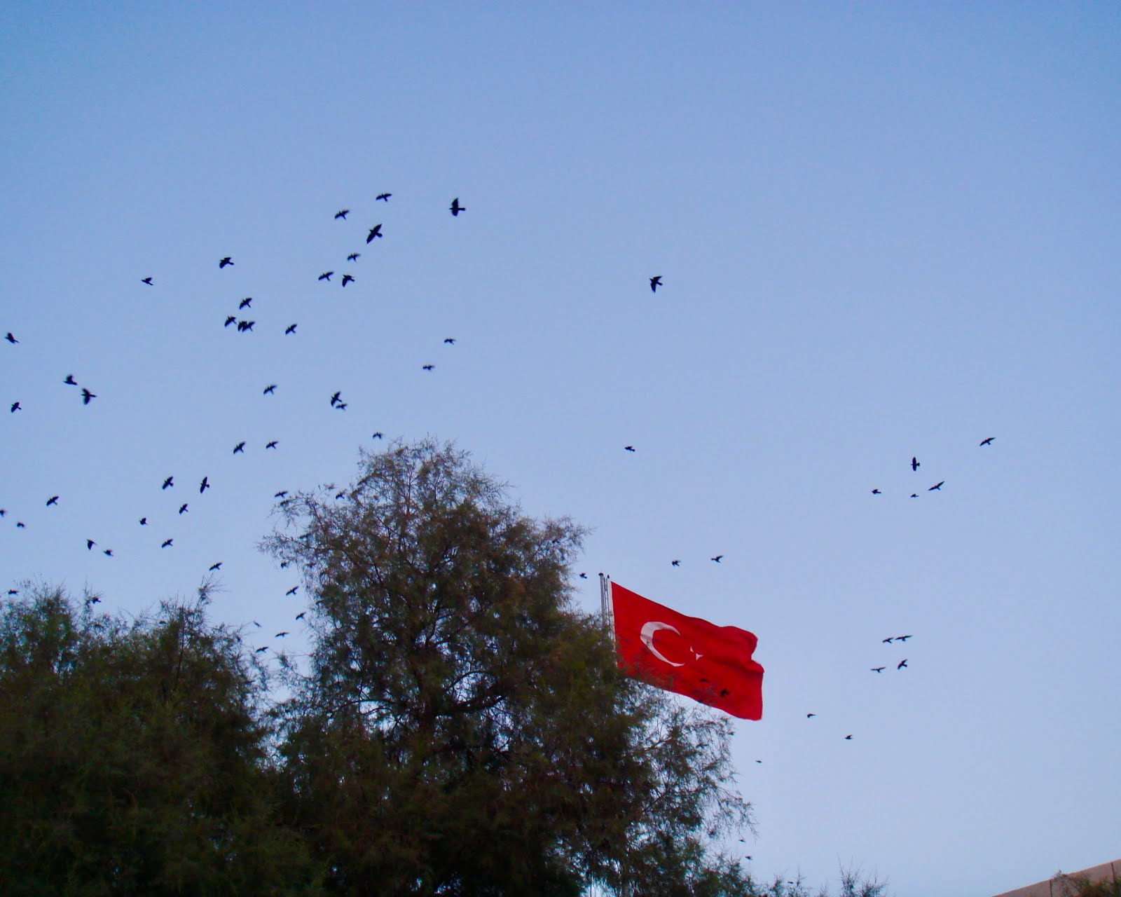 Καθώς προχωρούσαμε ένα περίεργο βουητό γέμισε τον ουρανό. Ήταν ένα διόλου ευκαταφρόνητο σμήνος πουλιών (δεν ήμουνα και δεν είμαι σε θέση να τα αναγνωρίσω) που έκαναν έναν ολόκληρο κύκλο πάνω από το λιμάνι και εξαφανίσθηκαν εν συνεχεία στον μακρινό ορίζοντα.