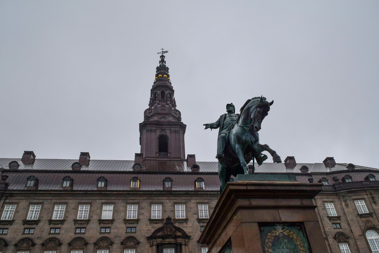 Tο έφιππο άγαλμα του Frederick VII συμπληρώνει τη διακόσμηση της Christiansborg Slotsplads.