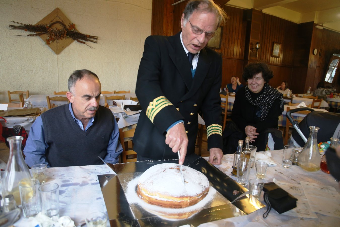 Και φετος αφου ξεπεράσαμε το αγχος των θερμιδων και ριχτήκαμε στα πιατα και τα γλυκα και δωσαμε και καταλαβε.. Η πιτα προσφορά της Αργυρως και το φλουρι κερδισε ο μπαμπης απο Ηράκλειο και φυσικα το κοψιμο στο καπετανιο που αυτη τη φορα εβαλε και επισημα το ενδυμα..