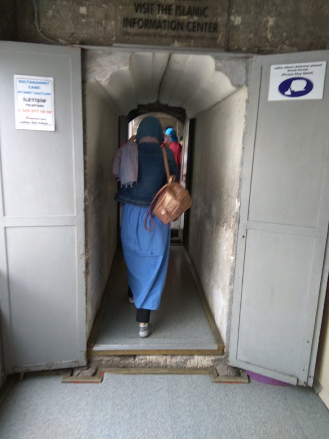Επόμενος σταθμός μας το Μπλε τζαμί και αφού η κοπέλα φόρεσε μια φούστα που μας έδωσαν εκεί πάνω από το παντελόνι (γιατί μαντίλι για το κεφάλι είχαμε)