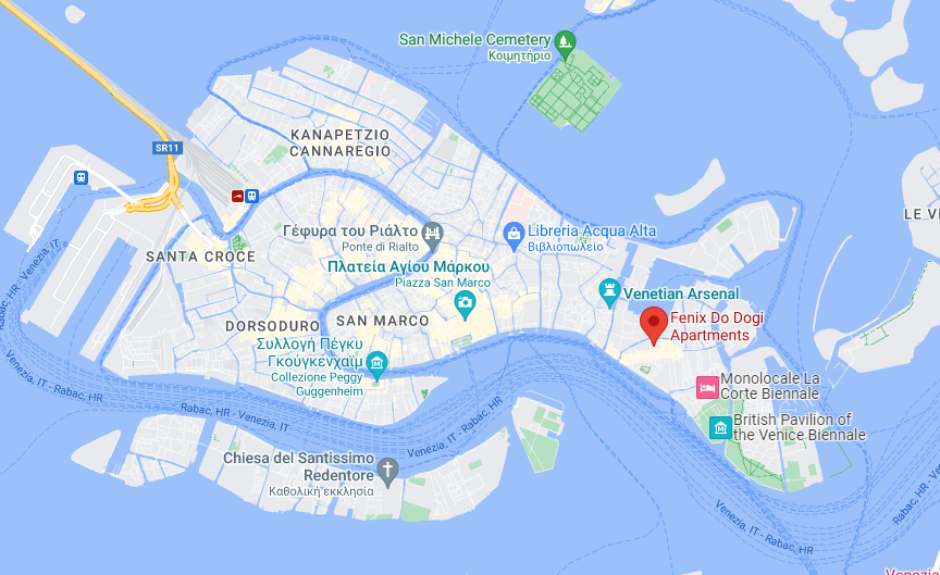 Έτσι όπως το βλέπω στο χάρτη, νομίζω η μπλε γραμμή του Alilaguna από το αεροδρόμιο Marco Polo είναι ο καλύτερος τρόπος για να φτάσεις στο συγκεκριμένο σημείο της πόλης