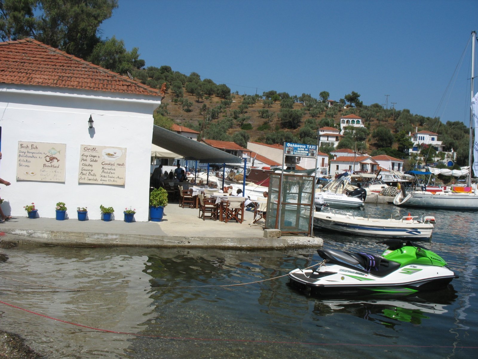 Αφού κάναμε τη καθιερωμένη στάση να ξεδιψάσουμε στο πολύ γνωστό καφενείο του χωριού, απέναντι διαγώνια από κει που αράζουν τα πλοία και πάνω από τη παραλία του οικισμού,