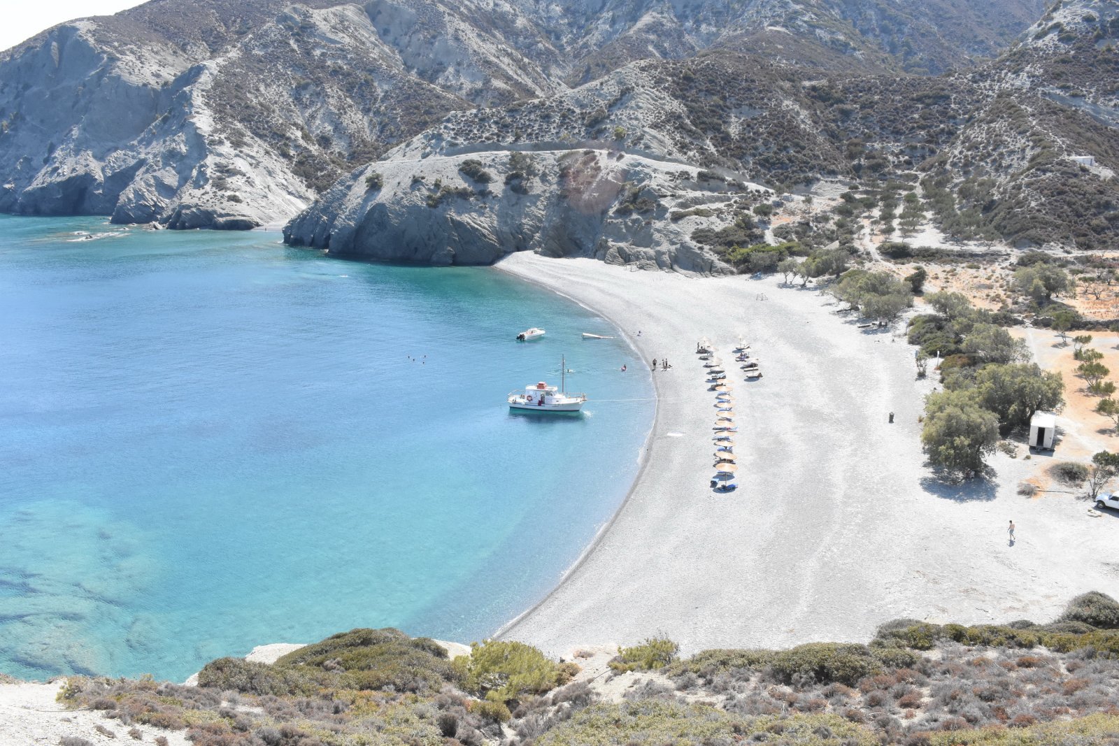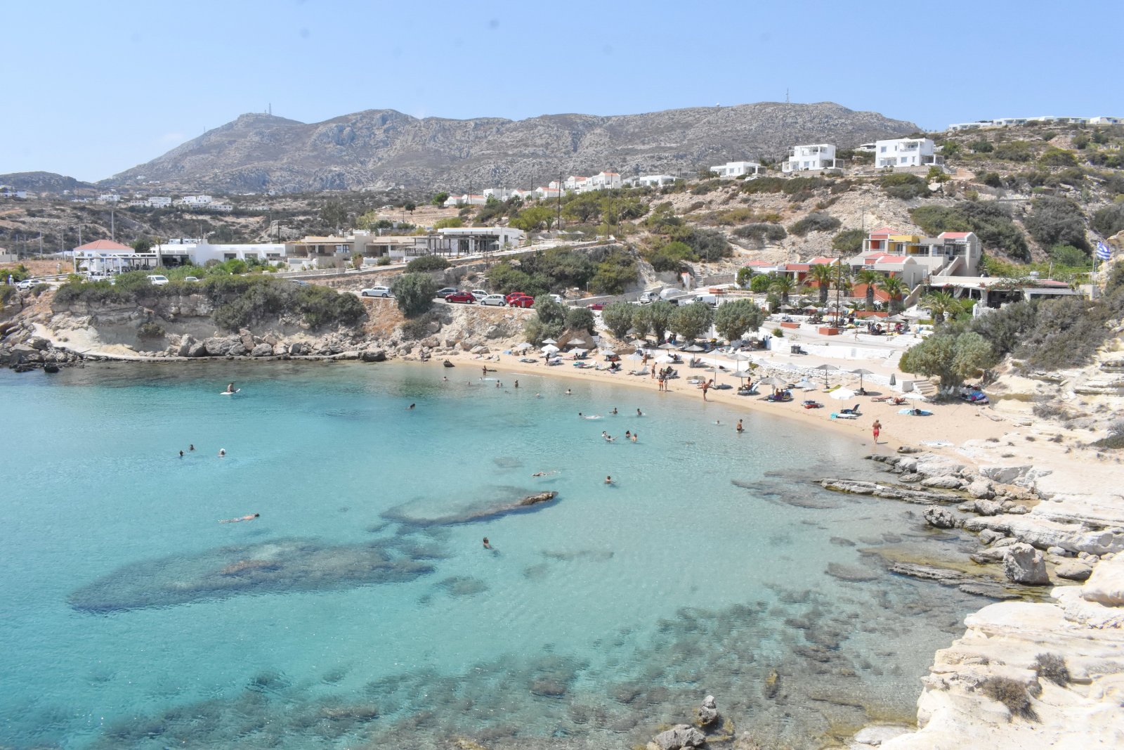 Η αθλιότητα βέβαια που έχει χτιστεί από κει πίσω προκειμένου να διαχειρίζεται τις ομπρελοξαπλώστρες και να πουλάει μπύρες perroni στους χειρότερους τουρίστες των Ελληνικών νησιών (βλέπε Ιταλοί), χαλούσε την όλη μαγεία του τοπίου: