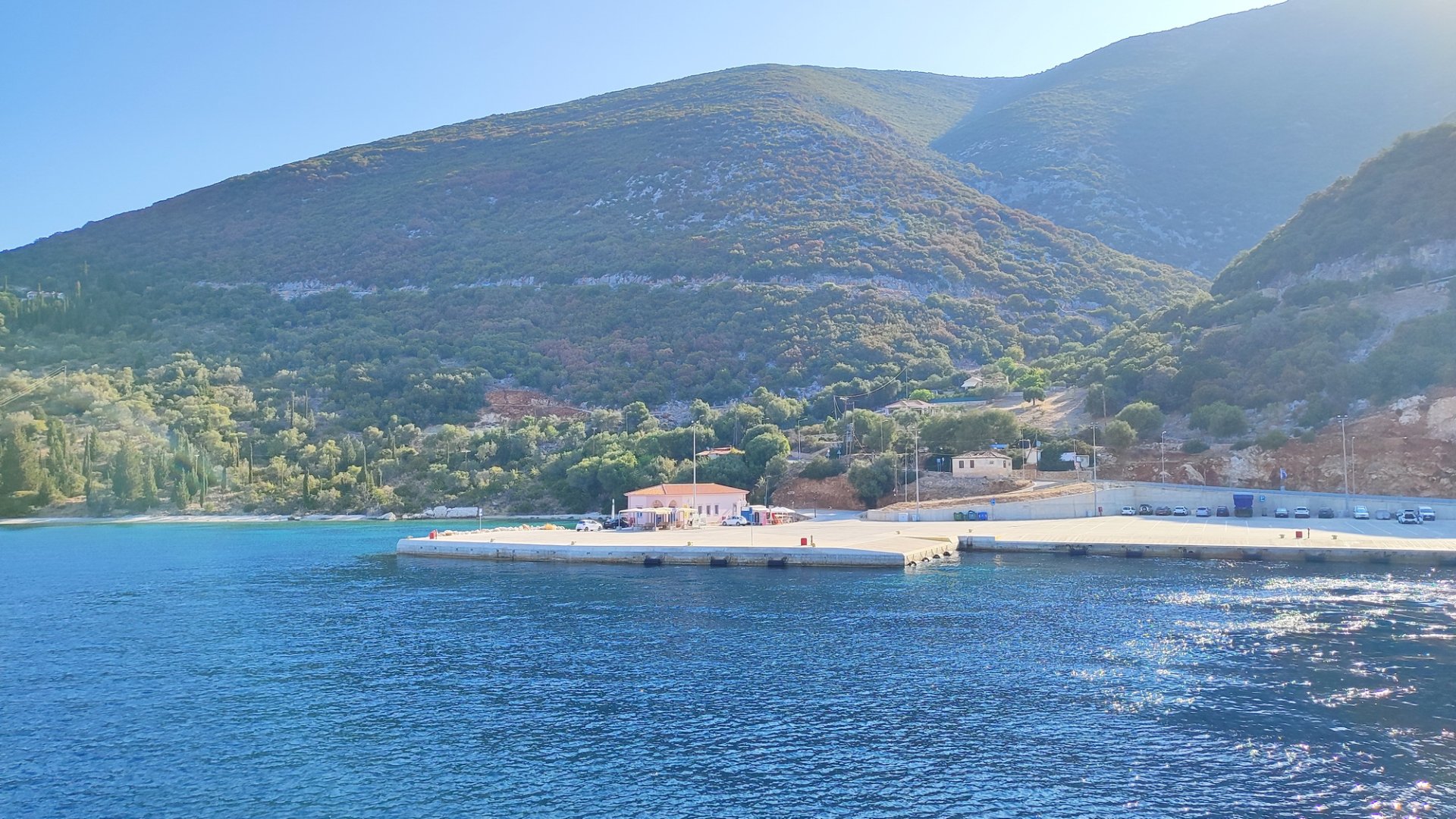 Η άφιξη με το μικρό πλοίο της γραμμής στον Κάλαμο Ιονίου