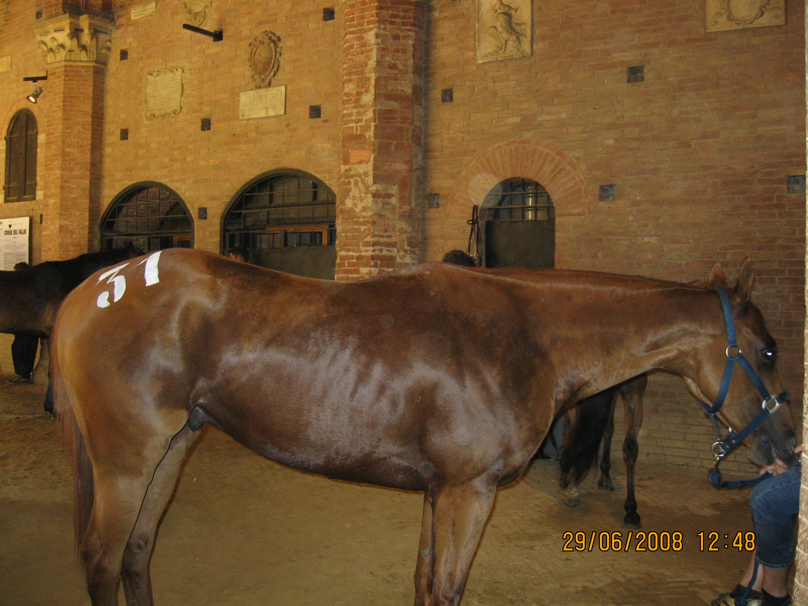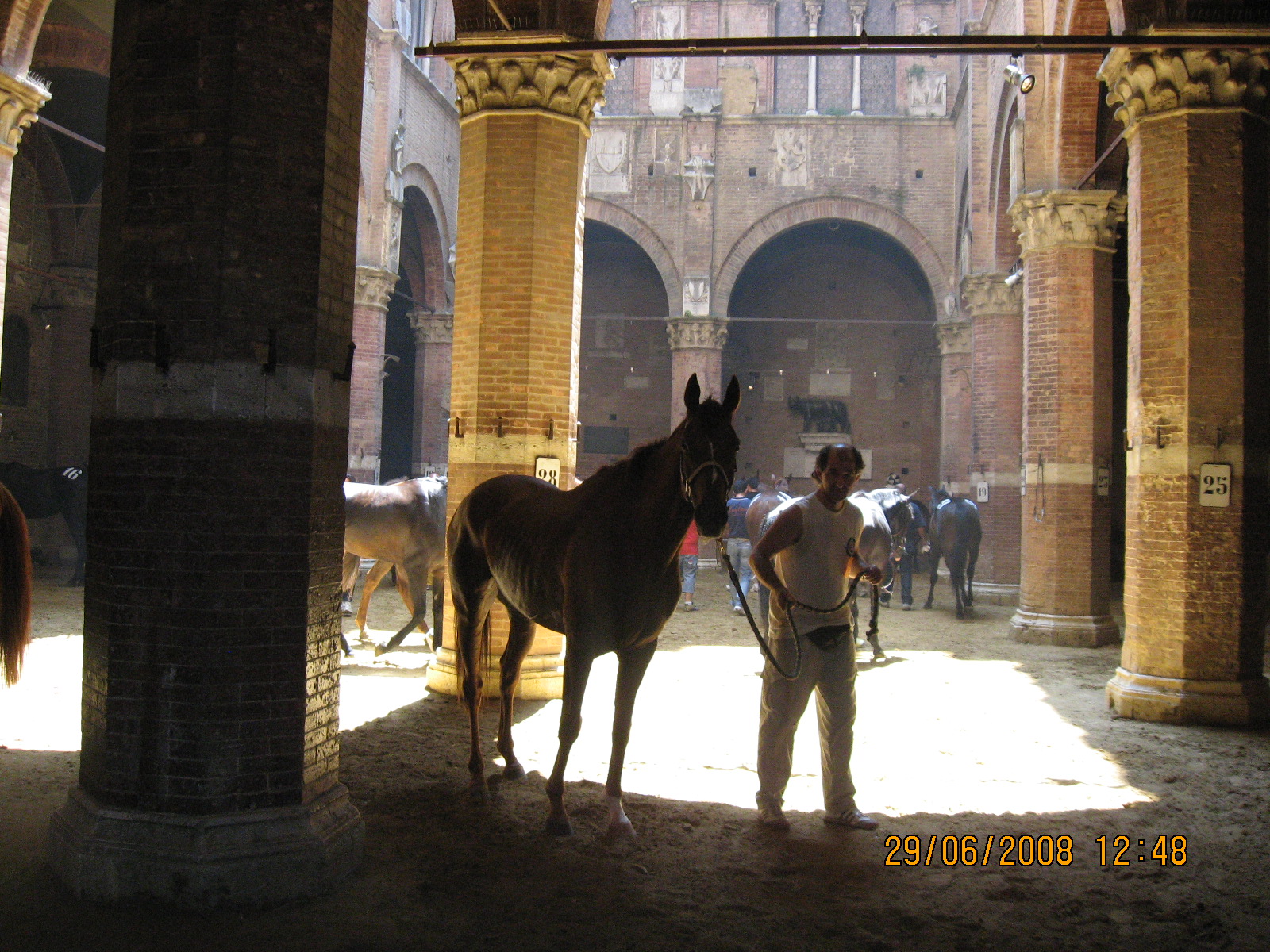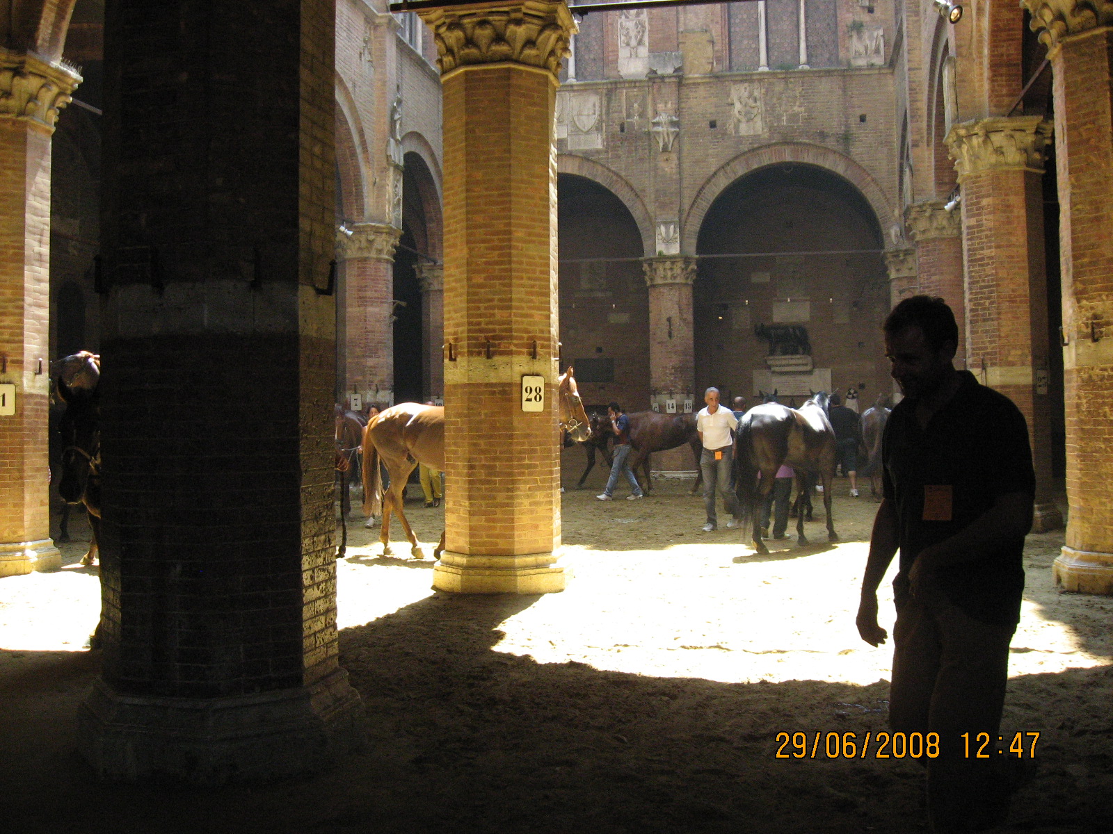 Είπα να εκμεταλλευτώ τη "φιλία" μου με το Mario και δειλά δειλά τον ρώτησα αν θα μπορούσα να μπω μέσα στο Δημαρχείο να ρίξω μια ματιά. Εκείνος μου είπε ότι κανονικά δεν επιτρέπεται, γιατί μέσα στο Δημαρχείο αυτή τη στιγμή βρίσκονται τα διαγωνιζόμενα άλογα, τα οποία “γνωρίζονται” με τους αναβάτες τους. Έχει και αστυνομικούς άλλωστε, που φυλάσσουν την είσοδο.