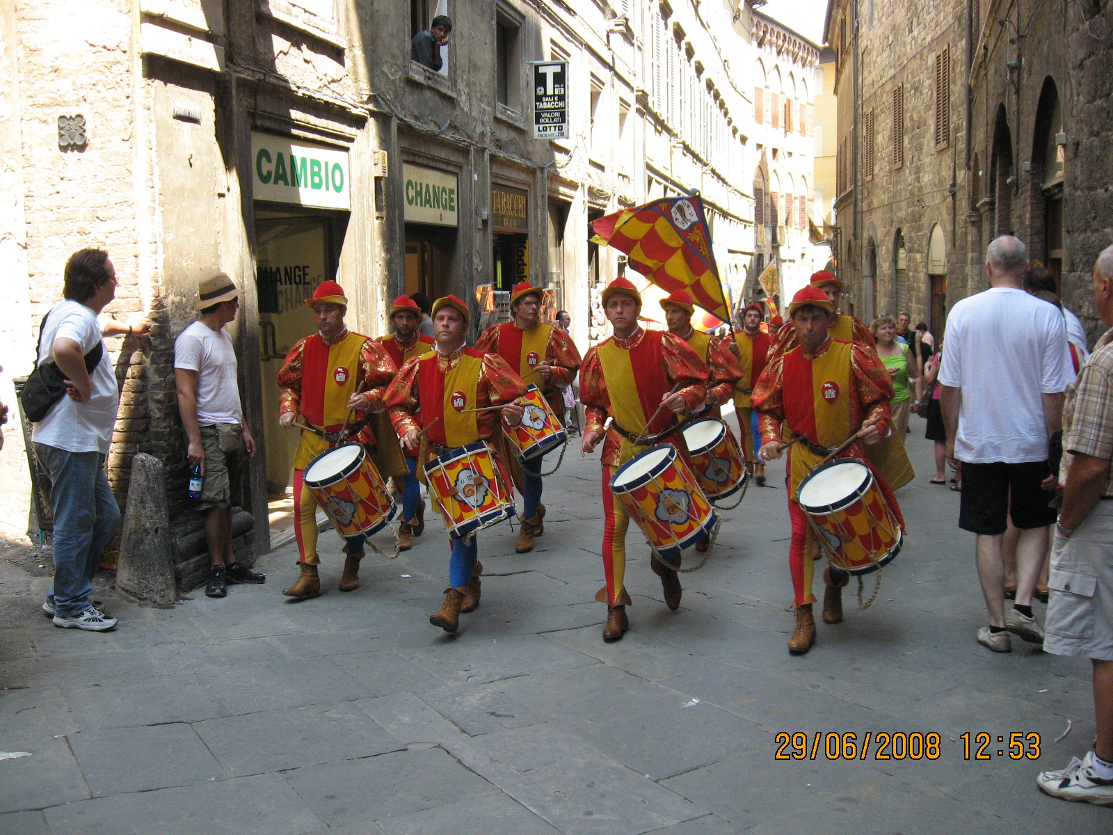 Την άλλη μέρα το πρωί (Κυριακή 29 Ιουνίου), την ώρα του πρωινού μας στο ξενοδοχείο, το τοπικό κανάλι είχε απ’ ευθείας μετάδοση από την piazza del Campo. Εκείνη την ώρα υπήρχε μια κινητικότητα στην πλατεία και εμείς βρισκόμασταν στο ξενοδοχείο και τρώγαμε πρωινό;