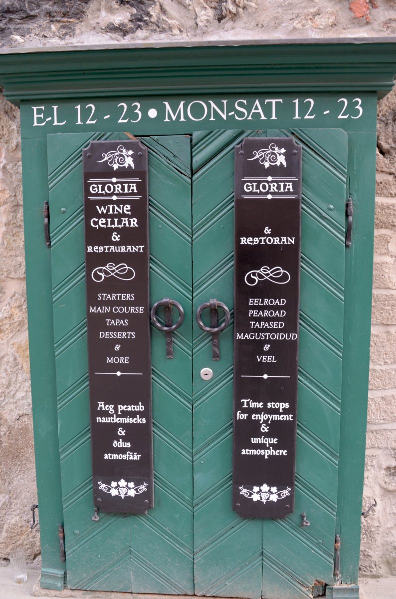 Κατεβήκαμε πάλι στην πλατεία Δημαρχείου, προχωρήσαμε προς την οδό Harju και στρίψαμε αριστερά στην οδό Müürivahe, όπου στον αριθμό 2, βρίσκεται ένα από τα 100 καλύτερα restaurant του κόσμου, σύμφωνα με κάποιες αξιολογήσεις. Το Gloria restaurant.