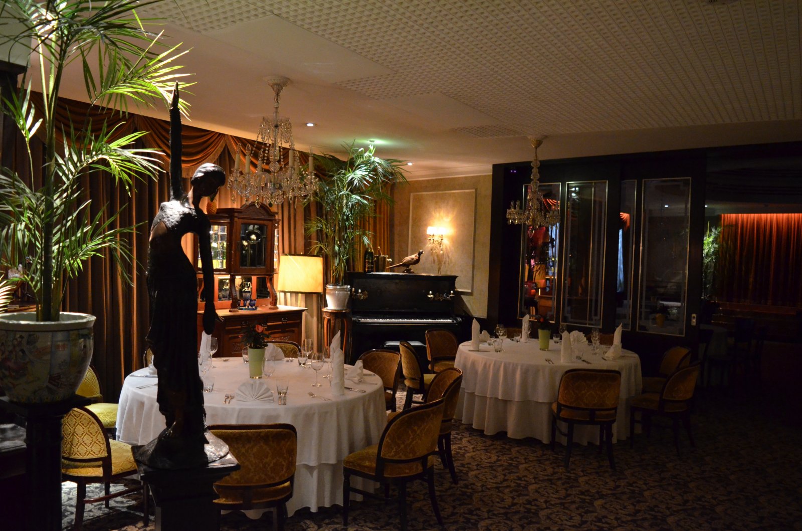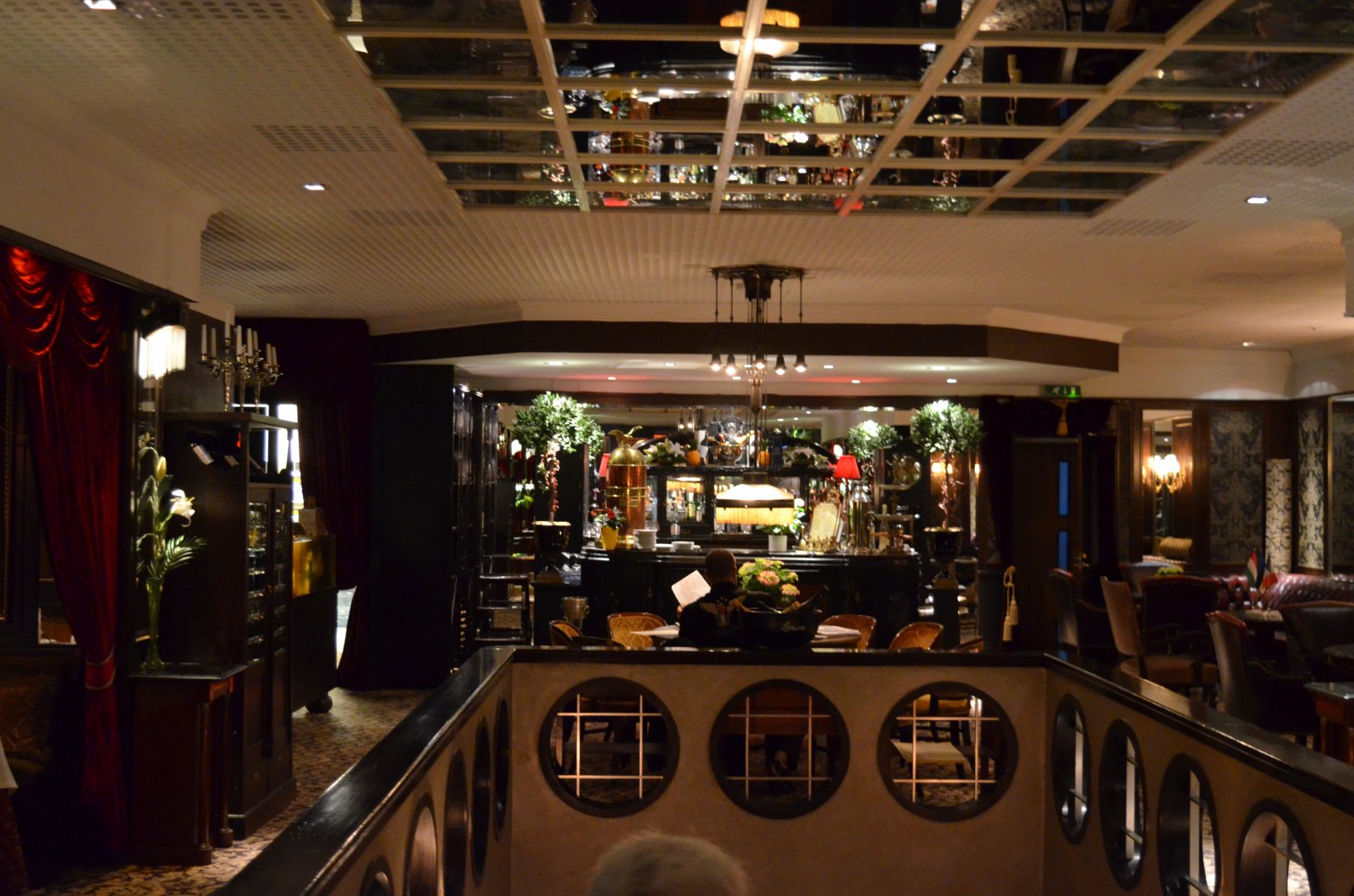 λόγω Κυριακής. Προχωρήσαμε προς την κύρια είσοδο. Μετά την κεντρική πόρτα εισόδου, υπάρχει μεγάλη βιτρίνα με όλες τις διακρίσεις (κύπελλα κλπ) του restaurant. Ανεβήκαμε τη μεγαλοπρεπή σκάλα και το εσωτερικό ήταν όπως το θυμόμουν. Εξαιρετικό. Πολύ ατμοσφαιρικό.