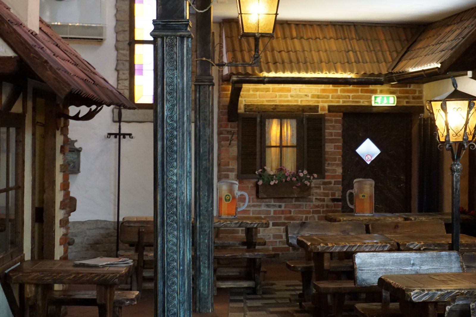 Κατευθυνθήκαμε προς το μπαρ. Μας εξήγησαν ευγενικά, ότι δεν σερβίρουν φαγητό, γιατί το restaurant, εκείνη την ημέρα, ήταν κλεισμένο από την κυβέρνηση για μια διακρατική δεξίωση. Επίσης μας είπαν, ότι για δύο ώρες, μέχρι να ξεκινούσε η εκδήλωση, μπορούσαμε να καθίσουμε να πιούμε τα ποτά μας. Το δεχτήκαμε ευχαρίστως και έτσι απολαύσαμε τα ποτά μας στον υπέροχο χώρο του Gloria restaurant. Αφού ήπιαμε τα ποτά μας στο Gloria 1937, βγήκαμε έξω και σκεφτήκαμε που να πάμε για φαγητό. Είχαμε τέσσερις γνωστές επιλογές. Το Olde Hansa restaurant, το restaurant Peppersack, απέναντι από το Olde Hansa, το Rataskaevu 16 και την επί της οδού Dunkri 5, μπυραρία Beer House. Η μπυραρία αυτή, διαθέτει μπύρα η οποία παράγεται μέσα στον χώρο της. Προτιμήσαμε την επιλογή της μπυραρίας.