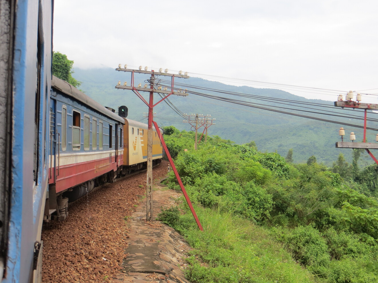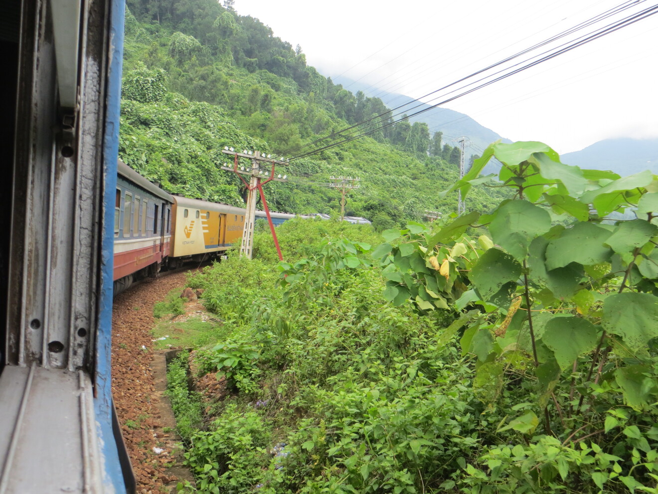 Από Ντα Νανγκ σε Χουέ θα πηγαίναμε με το τρένο. Η διαδρομή θεωρείται μία από τις καλύτερες καθώς περνάει το Χάι Βαν από το πρώτο τρίτο του βουνού μέσα από πολύ στενά τούνελ και σε μία δαιδαλωτή διαδρομή που ακολουθεί το ανάγλυφο. Στην Ταϊλάνδη είχα βρει εξαιρετικό το people spotting στα φτηνά τρένα και έτσι είπα στην Βιετναμέζα να μας κλείσει το φτηνό εισιτήριο, σύντομη ήταν η διαδρομή θα τη βγάζαμε πέρα και με σκληρές καρέκλες (δηλαδή ξύλινες) και ανεμιστήρες.