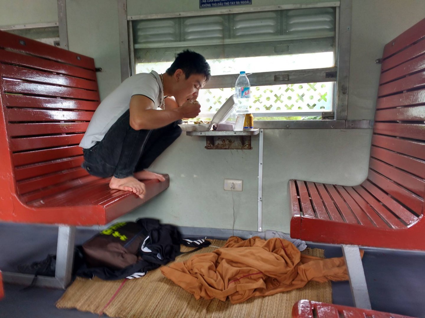 Στο ίδιο βαγόνι με εμάς λίγο πιο πέρα καθόταν στην ίδια τετράδα θέσεων ένα ζευγάρι ξένων backpacker στη μία πλευρά και ένα ζεύγος νεαρών βιετναμέζων από την άλλη, που όμως φαινόταν χαμηλής οικονομικής δυνατότητας και παιδείας. Είναι εντυπωσιακό πως ακόμα και αν είσαι στην άλλη άκρη του κόσμου ξεχωρίζει κατά κάποιο τρόπο η ποιότητα της ζωής των ανθρώπων (που φυσικά οφείλεται στις συνθήκες).
