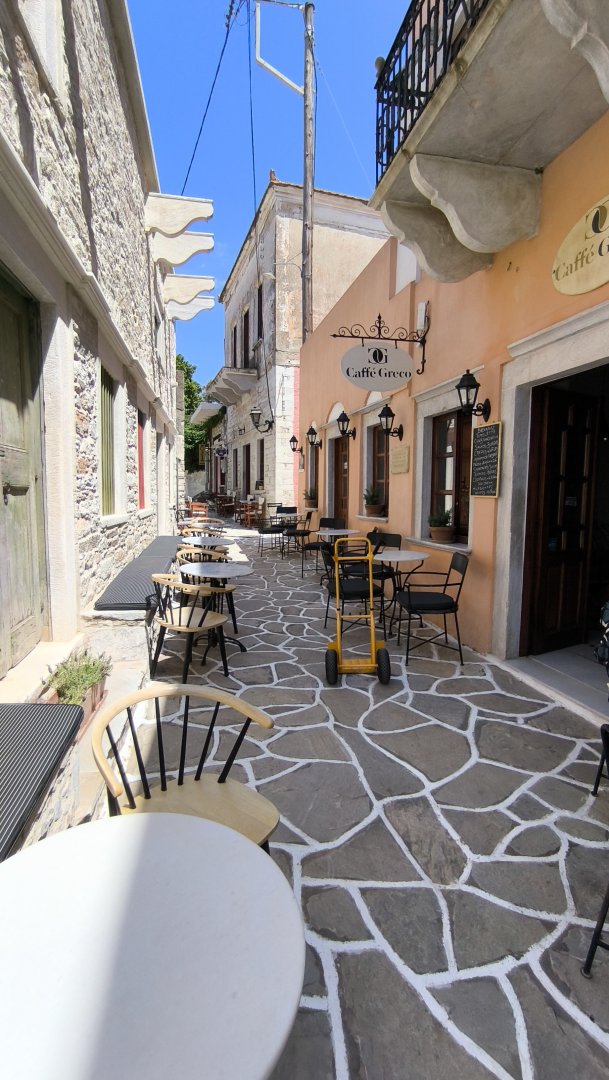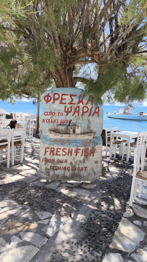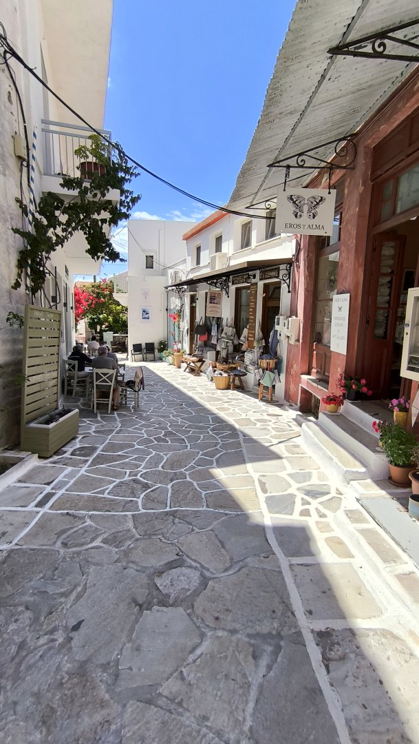 Στάση όγδοη το χωριό Απείραθος είναι το δεύτερο μεγαλύτερο χωριό μετά το Φιλότι. Αφού θα πάτε οπωσδήποτε εκεί, εκτός από το να διασχίσετε τα στενάκια του, πρέπει να κάνετε στάση σίγουρα για φαγητό στη παραδοσιακή ταβέρνα Αμοργινός. Να παραγγείλετε οπωσδήποτε το παραδοσιακό Ρόστο. Κοκκινιστό ντόπιο χοιρινό με πολύ σκόρδο και μπαχαρικά, μαγεία. Επίσης πρέπει να δοκιμάσετε το Ζαμπόνι που είναι σαν προσούτο από μέρος πανσέτας όμως. Επίσης και τα δικά τους τυριά, εγώ δοκίμασα τη Γραβιέρα και το Αρσενικό. Ήταν όλα φανταστικά. Έφαγα εκεί την επόμενη μέρα αλλά το βάζω εδώ για να είναι συμμαζευμένα κάπως. Τιμές για την ιστορία το Ρόστο 12,40 και η μερίδα τυριών που μπορεί να σου βάλει τα δυο από τα τέσσερα 8,80. Έχει με 17 ευρώ την πιατέλα τυριών και έχει έξτρα σάλτσα ντομάτας και τα άλλα δυο τυριά ντόπια και αυτά ανθότυρο και ξινομυζήθρα. Όμως ήμουν μόνος και δε θα τη κατάφερνα. Άσε που προτιμώ τα παλαιωμένα. Γενικότερα ότι πάρετε εκεί είναι ποιότητας.