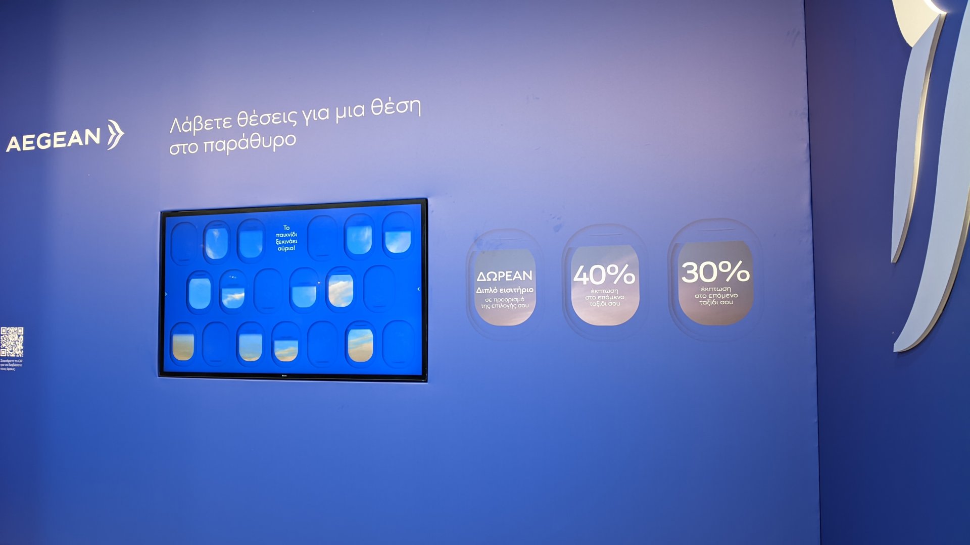 Τελικά το διάβασα: Στο περίπτερο της Aegean στο Sponsors Village θα αναδειχθούν 10 τυχεροί που θα πάρουν διπλό εισιτήριο, 20 τυχεροί με κουπόνι 30% έκπτωση και 10 τυχεροί με κουπόνι 40% έκπτωση, τα ταξίδια εκτός περιόδων αιχμής.