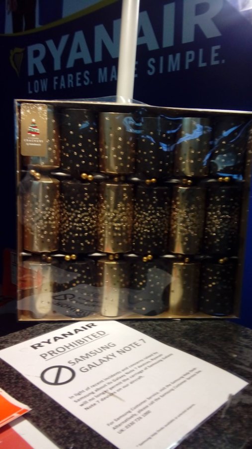 Ρωτώντας έμαθα ότι ήταν βεγγαλικά που μπορούσαν να εκραγούν κατά την διάρκεια της πτήσης.Προιον που είχε μοσχοπουληθεί κατά την διάρκεια των γιορτών στο Λονδίνο....(για το samsung δεν πρόσεξα τι έλεγε το χαρτί)