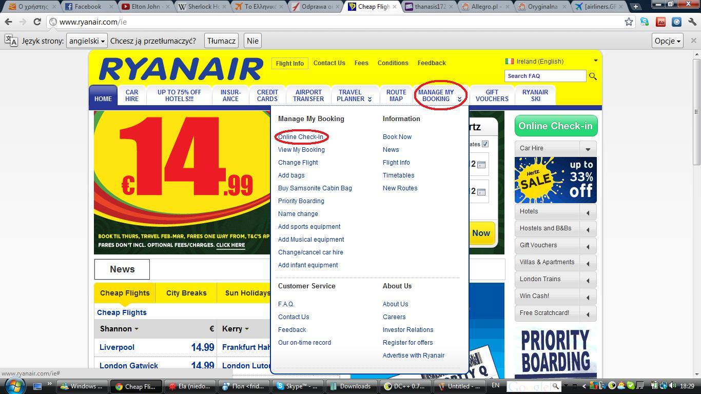 Μια μικρή παράκληση, μιας κι δε έχω αγοράσει εισιτήριο για, να σας δείξω πως να κάνετε check in θα ανεβάσω screen shot από ένα πολωνικό φόρουμ (που δυστυχώς θα είναι στα πολωνικά γραμμένα), μέχρι να αγοράσω εγώ, κι θα σας δείξω πως να κάνετε check in.