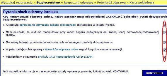 Άμα γράψατε σωστά τα στοιχεία σας, θα σας βγει η σελίδα, που θα γράψει διάφορα για το αν ξέρετε τους κανονισμούς μεταφορά υγρών, ότι κανείς δε σας βοηθάει στο πακετάρισμα της βαλίτσας (ξένος για σας), κι πατάμε τικ, σε όλα τα κουτάκια.