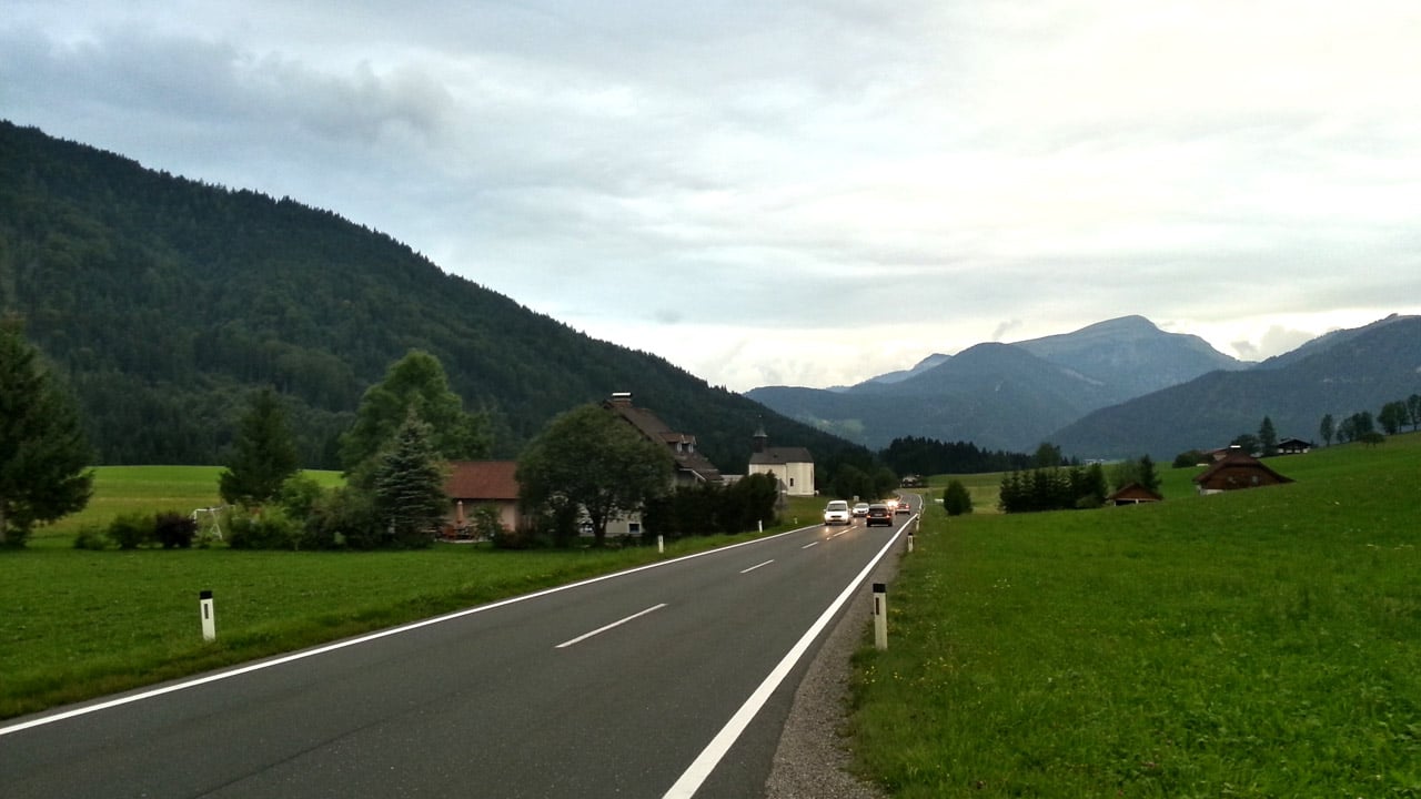 Μπήκαμε Αλπεις. Η σκέψη μου είναι ότι θα ανεβούμε τα βουνά και τα λαγκάδια για να φτάσουμε στο Χαλστατ αλλα τελικά μόνο έτσι δεν είναι. Όλοι οι δρόμοι είναι στις ρίζες του βουνού και κυρίως στο πλάι από κάποιο ποτάμι. Στα βουνά ανεβαίνεις μόνο αν θες να πας στα βουνά.
