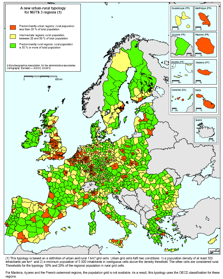Στο μεταπτυχιακό μου όπως ανέφερα παρακολούθησα και 2 μαθήματα σχετικά με κλιματική αλλαγή. Μία απ'τις πηγές του κακού που αναφέρονται είναι ο υπερπληθυσμός. Όμως όταν το αναφέρεις έτσι γενικά είναι παραπλανητικό. Δεν έχει το ίδιο αντίκτυπο ο υπερπληθυσμός μιας αναπτυσσόμενης χώρας με μία ανεπτυγμένη. Στην πρώτη σελίδα ο chrisbd έγραψε κάτι πολύ ωραίο το οποίο επίτηδες δεν σχολίασα μέχρι τώρα "Είναι ίσα με την Πελοπόννησο και έχει διπλάσιο πληθυσμό από την Ελλάδα, καλούς δρόμους αλλά πολύ αυτοκίνητο και μποτιλιάρισμα στις εθνικές οδούς κάποιες στιγμές..". Φανταστείτε πόσο θα έπρεπε να αστικοποιηθεί η Πελοπόννησος για να χωρέσει 17 εκατομμύρια. Από εκεί αρχίζουν όλα τα προβλήματα. Η Ολλανδία είναι πυκνοκατοικημένη χώρα με λίγο πράσινο αναλογικά. Στο επόμενο σχήμα μπορείτε να δείτε ότι οι αστικές περιοχές στην Ολλανδία επικρατούν της υπαίθρου στο μεγαλύτερο κομμάτι της χώρας.