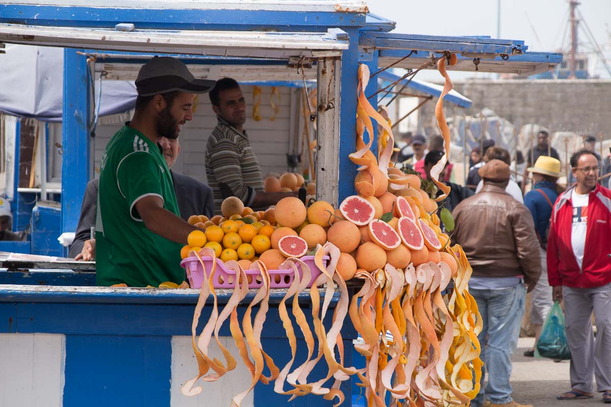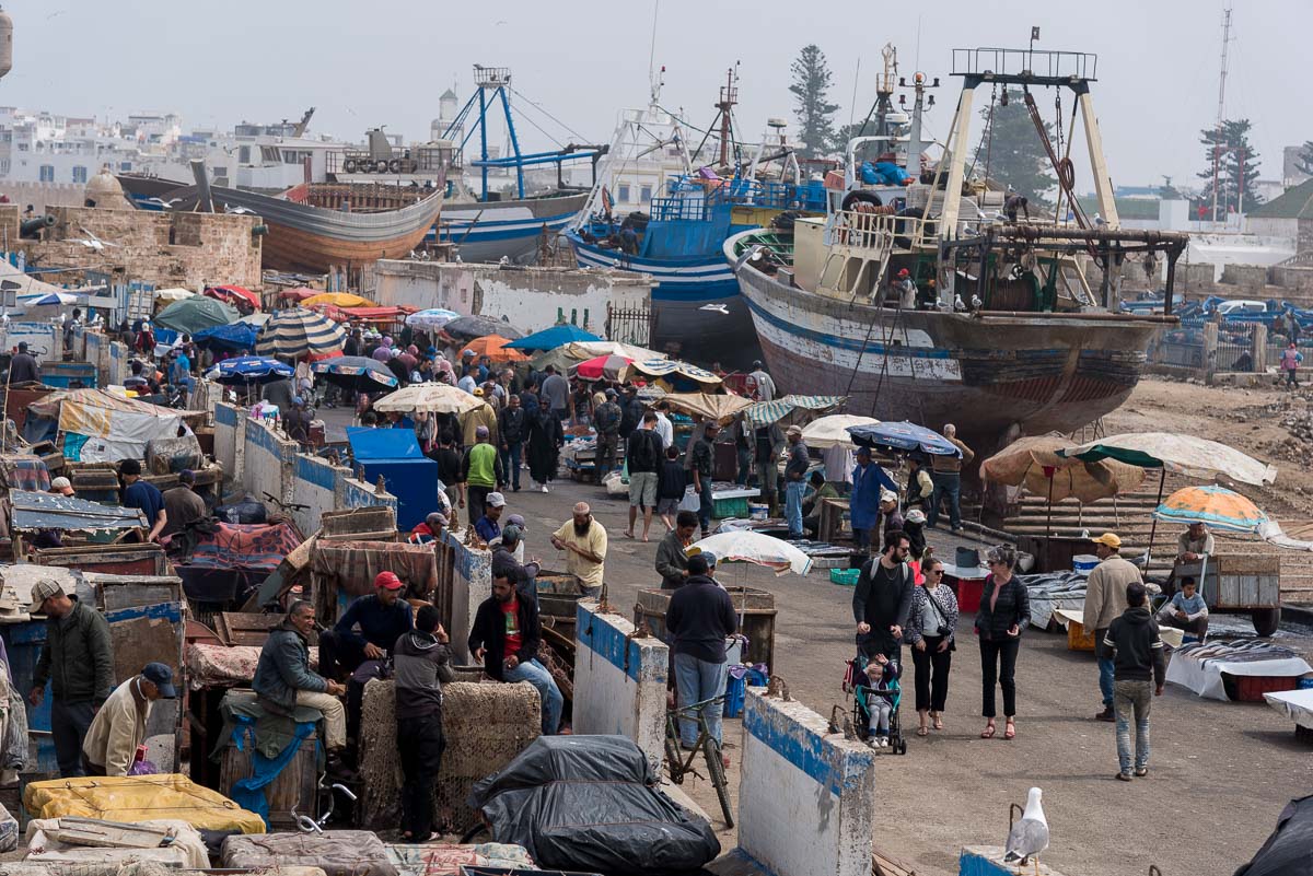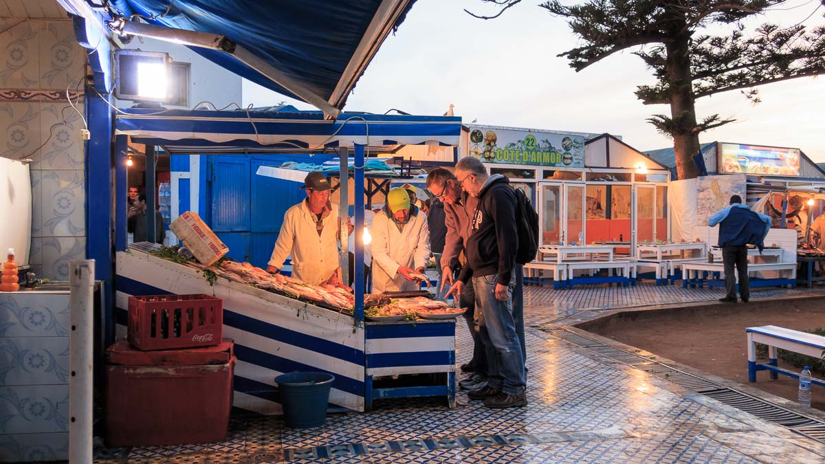 Το δεύτερο βράδυ μας στην Essaouira αποφασίστηκε σχεδόν ομόφωνα (ο Σ. μειοψήφισε επιμένοντας στη λίστα του) να γράψουμε στα παλιότερα των υποδημάτων μας τις προτάσεις του tripadvisor και καταλήξαμε στις λαϊκές υπαίθριες ψαροταβέρνες κοντά στο λιμάνι. Χόρτασαν οι γευστικοί μας κάλυκες τσιπούρα πελαγίσια και μπαρμπουνάκι ψητό με κόστος μόλις 11 ευρώ το άτομο. Αγνοήστε την πιεστική συμπεριφορά των κραχτών κάθε ψαροταβέρνας, ελέγξτε τα ψάρια στους πάγκους, επιλέξτε και απολαύστε. Εδώ δεν πληρώνετε περιβάλλον και δήθεν κουζίνα…