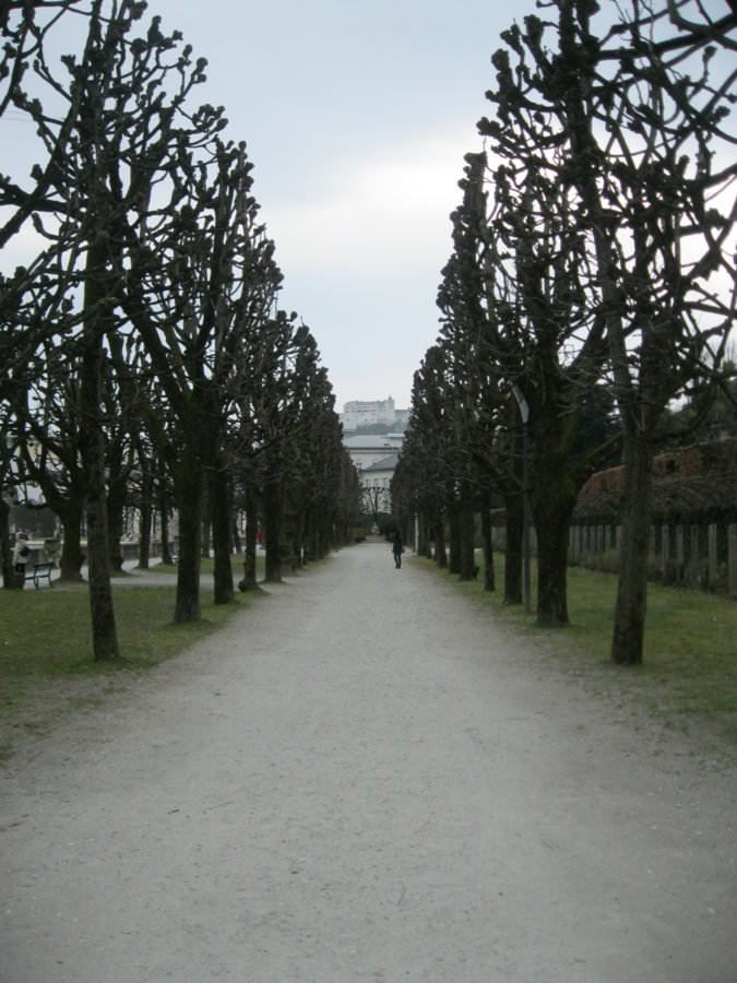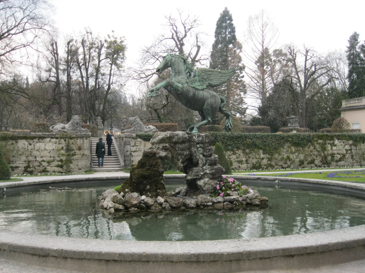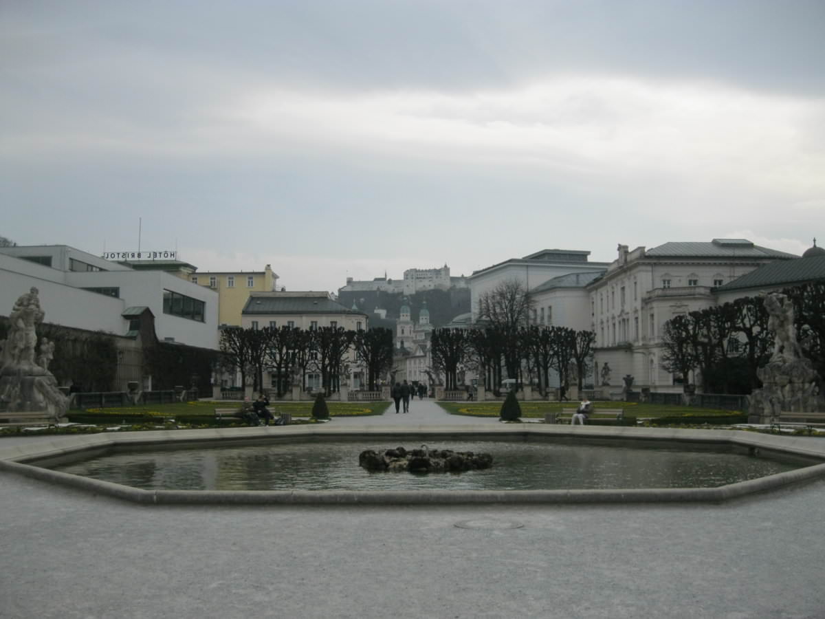 Επειδή το ξενοδοχείο μας ήταν από την δεξιά πλευρά του ποταμού Salzach, αποφασίζουμε πριν περάσουμε την γέφυρα για την παλιά πόλη, να κάνουμε μια επίσκεψη στο παλάτι του Mirabell με τους ομώνυμους κήπους!Με την είσοδο μας γινόμαστε θεατές μιας φωτογράφισης από γάμο της περιοχής ,και προσπαθούμε να μην την χαλάσουμε! Οι κήποι πολύ όμορφοι και προσφέρονται για μια χαλαρωτική βόλτα ,όπως και για ένα χαλάρωμα στα παγκάκια δίπλα στο κεντρικό συντριβάνι,όπου το σημείο μας δίνει μια πρώτη "φωτογραφία" του Festung Hohensalzburg ,στο λόφο του Salzburg!