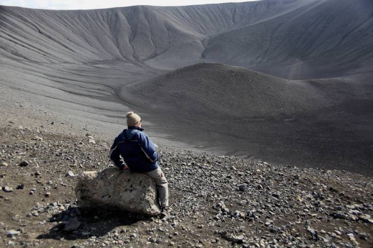 Εμείς πάντως, συνεχίζοντας στην ήπια γραμμή των σταδιακών αποκαλύψεων, αποφασίζουμε να μην πέσουμε με τα μούτρα κατ ευθείαν στο ψητό αλλά να ξεκινήσουμε τη μέρα μας από τα υπόλοιπα αξιοθέατα της περιοχής. Και πιο συγκεκριμένα από μια ανάβαση στον θεαματικό κρατήρα Hverfell. Ανενεργός σήμερα (γιατί αύριο ποτέ δεν ξέρεις!), ο εν λόγω κρατήρας έκανε την εκρηκτική του εμφάνιση πριν 2500 χρόνια, όταν το ηφαίστειο έσκασε γεννώντας έναν εντυπωσιακό κώνο κοντά μισό χιλιόμετρο ύψος και πάνω από ένα χιλιόμετρο διάμετρο. Ένα μισαωράκι περπάτημα από το χαραγμένο ανηφορικό μονοπάτι και νάμαστε: