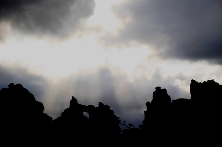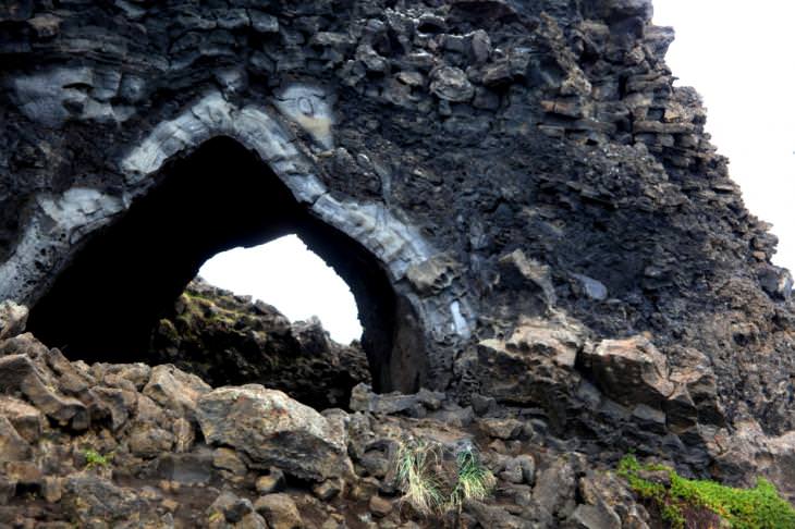 Από τη δραστηριότητα του ίδιου ηφαιστείου (ή μάλλον ολόκληρου ηφαιστειακού συμπλέγματος της περιοχής) ξεπήδησε το γειτονικό πεδίο λάβας Dimmuborgir, εκεί όπου η βροχή και οι αέρηδες, με σύμμαχο το χρόνο, σμίλεψαν υπομονετικά τα μαύρα σουρεαλιστικά γλυπτά που προσφέρονται τώρα στα έκθαμβα μάτια μας.
