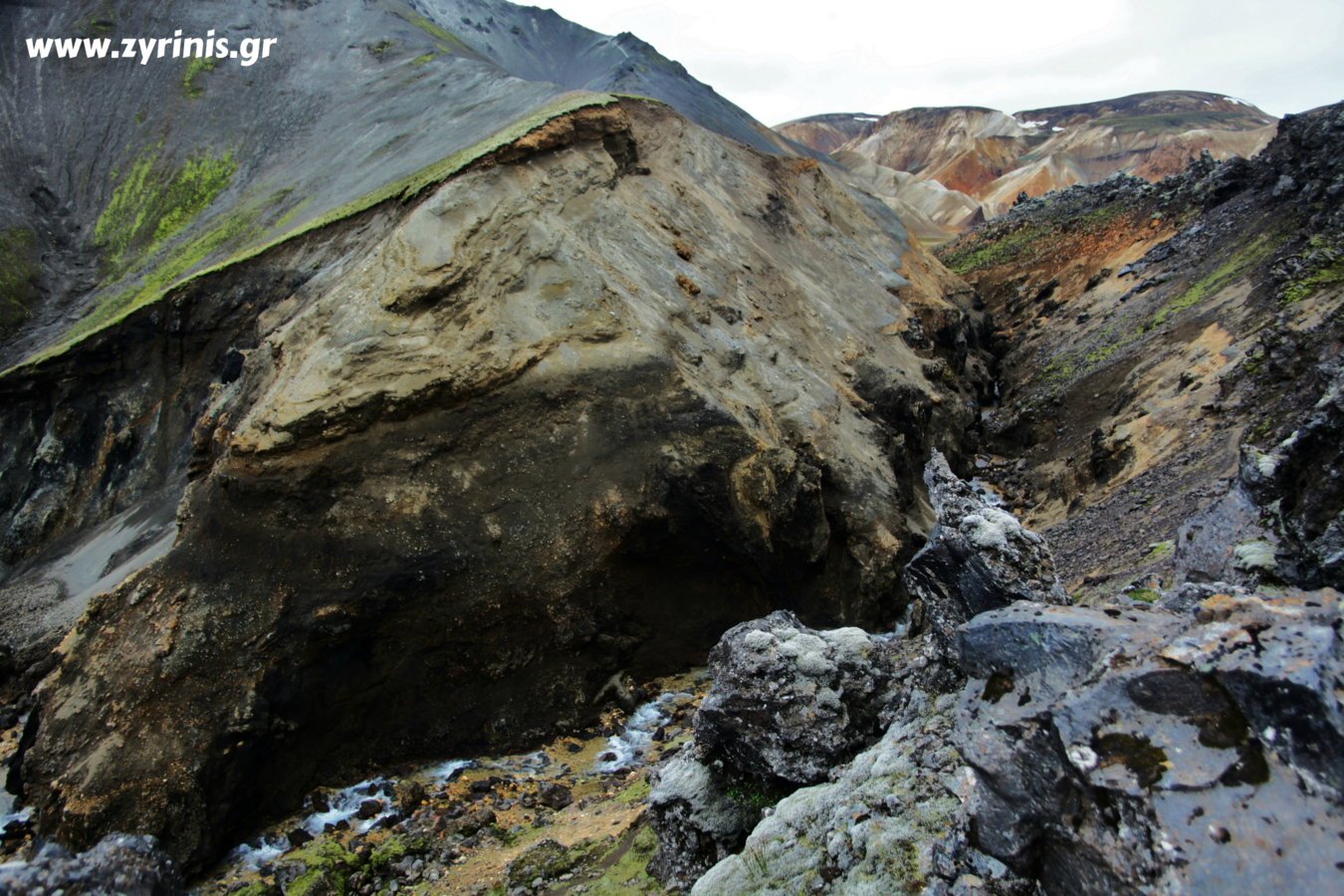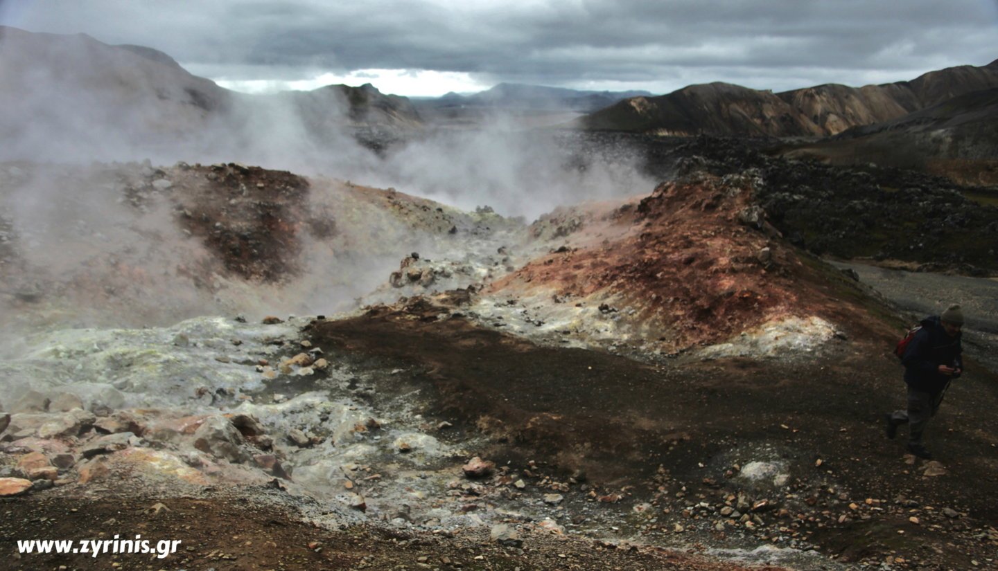 Το Hveravellir δεν συνοψίζεται απλά στη θερμή φυσική πισίνα όπου τσαλαβουτάσαμε απολαυστικά τα κορμιά μας πριν λίγα μόλις λεπτά. Δεν πρόκειται δηλαδή για ένα ακόμη (μεγάλο έστω) «χοτ ποτ» σαν τόσα και τόσα που συναντήσαμε στο διάβα μας, διασκορπισμένα σε διάφορα σημεία της ισλανδικής υπαίθρου. Το Hveravellir είναι ένα ολόκληρο γεωθερμικό πεδίο, κάτι σαν compact εκδοχή του Hverir στα περίχωρα του Myvatn. Ένα Hverir μινιατούρα σαν να λέμε, μείον τους τουρίστες.