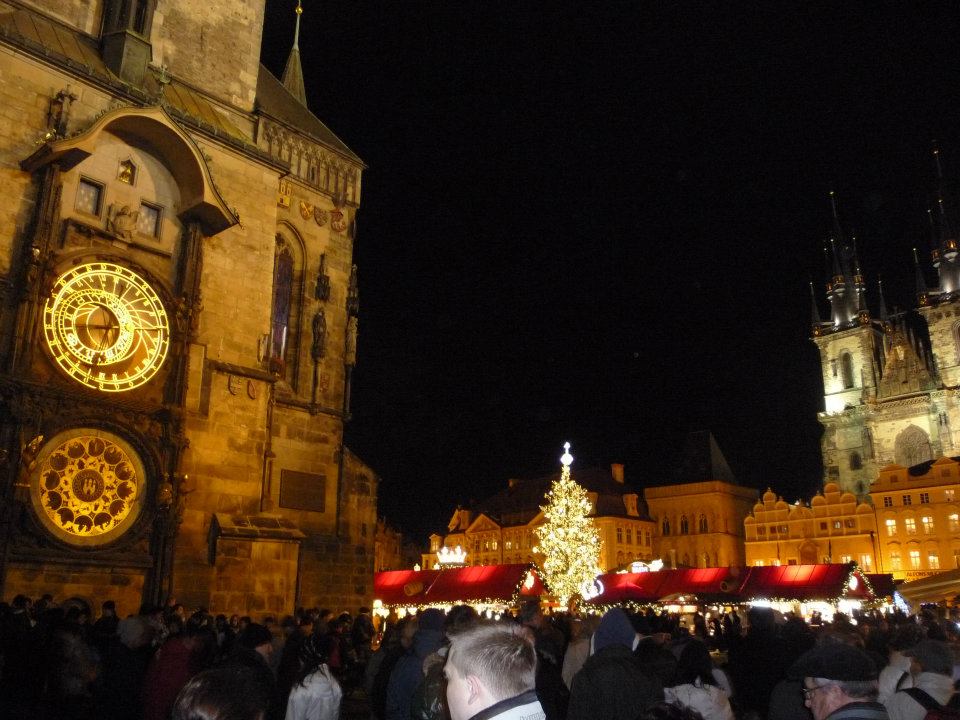 Παλιά Πόλη: Πολύ όμορφα στολισμένη με μεγάλη Χριστουγεννιάτικη αγορα. Το περιβόητο αστρονομικό ρολόι περιτριγυρισμένο από κόσμο που περιμένει την αλλαγή της ώρας με τους Απόστολους να εμφανίζονται από τα παράθυρα. Καθε μία ώρα μετά το "show" ένας τύπος με σάλπιγγα παίζει από ψηλά και ο κόσμος χειροκροτά, σφυρίζει, γελάει και γενικά γίνεται χαμός! Τα κτίρια επιβλητικά και ωραία φωτισμένα το βράδυ.. Οι βόλτες στα στενά της Stare Mesto επιβάλλονται γιατί υπάρχουν ένα σωρό μαγαζάκια να χαζέψεις και κυρίως καφέ και εστιατόρια..