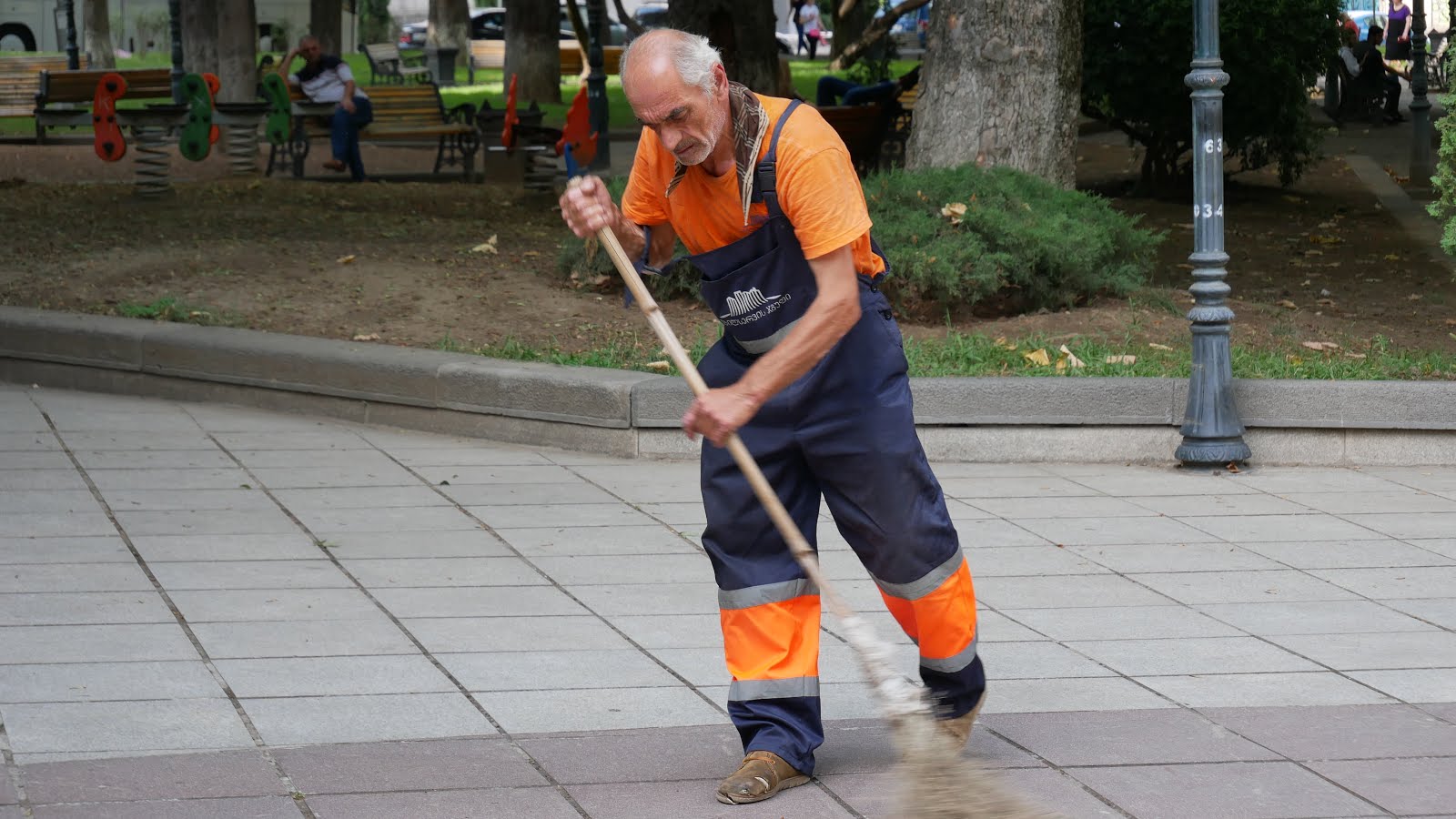Με πάθος, ο καθαριστής, φροντίζει να αστράφτει το πάρκο.