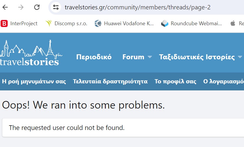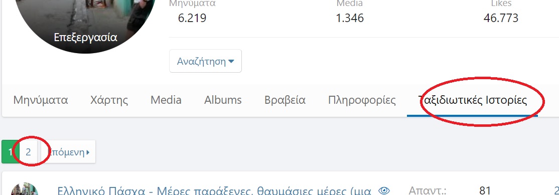 Για στείλε ένα λινκ να το κοιτάξω αυτό, ακούγεται εύκολο να διορθωθεί.Παρατήρησα το εξής στο tab "Ταξιδιωτικές Ιστορίες" στην σελίδα του προφίλ των μελών. Όταν οι ταξιδιωτικές ιστορίες είναι πολλές και εκτείνονται σε 2+ σελίδες, η μετάβαση στις διάφορες σελίδες της λίστας, είναι δυνατή μόνο με χρήση των κάτω κουμπιών. Στο link των πάνω λείπει ο κωδικός του μέλους, οπότε παίρνω το εξής: