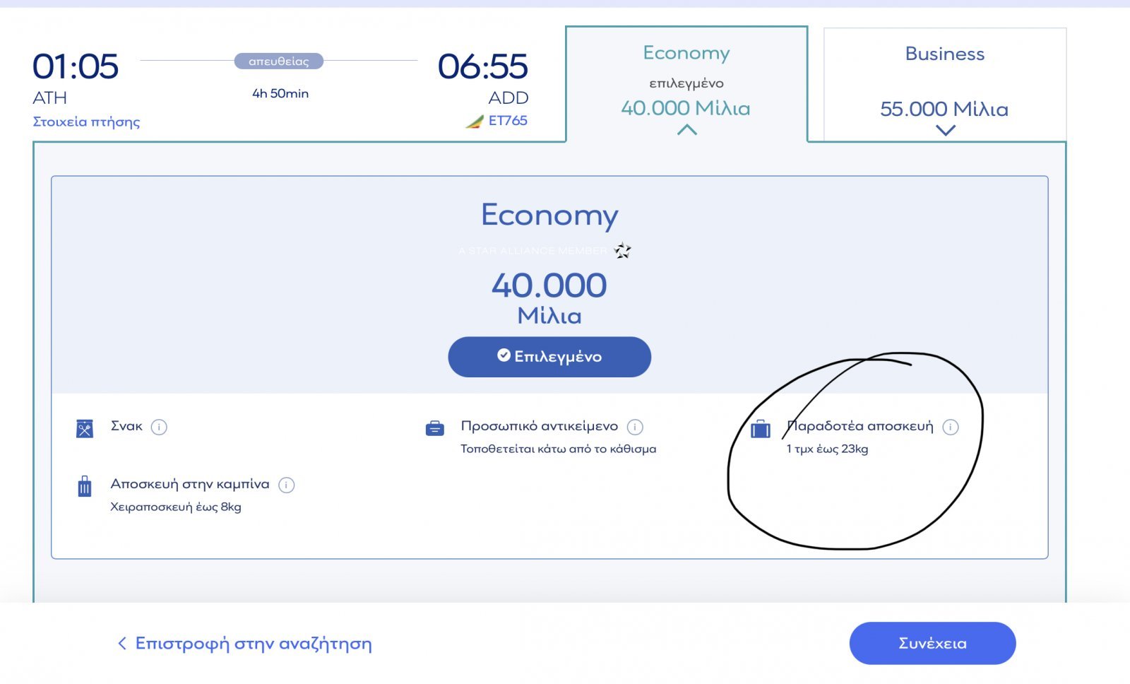 αν αγοράσεις το εισιτήριο με μίλια δίνουν μια χειραποσκευή και μια 23κιλη στην οικονομική.