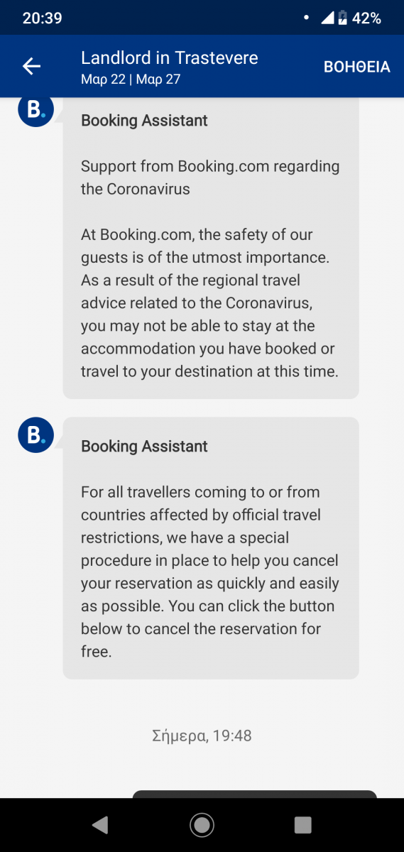 Είχα non refundable κράτηση για Ρώμη. Μετά την χθεσινή ανακοίνωση για καραντίνα σε όλη την χώρα , η Booking δίνει τη δυνατότητα για επιστροφή χρημάτων.