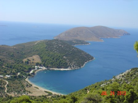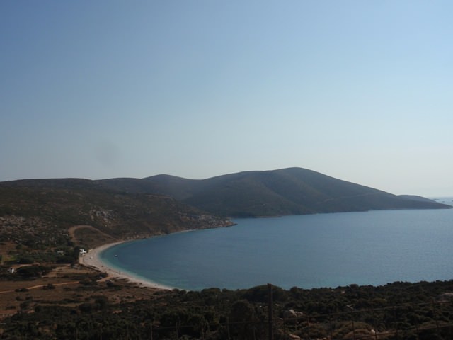 Να πάτε και Πεύκο (προσοχή σε ένα φύκι που υπάρχει εκεί και πέρυσι ταλαιπώρησε τη μια ανιψούλα μου η επαφή που είχε μαζί του...ευτυχώς έχει νοσοκομείο το νησί!) Η παραλία όπως φαίνεται από το εκκλησάκι του Αγ. Παντελεήμονα. (μαζεύει κόσμο η συγκεκριμένη παραλία δυστυχώς. Να πάτε νωρίς, αν δε θέλετε φασαρία όπως εγώ...)