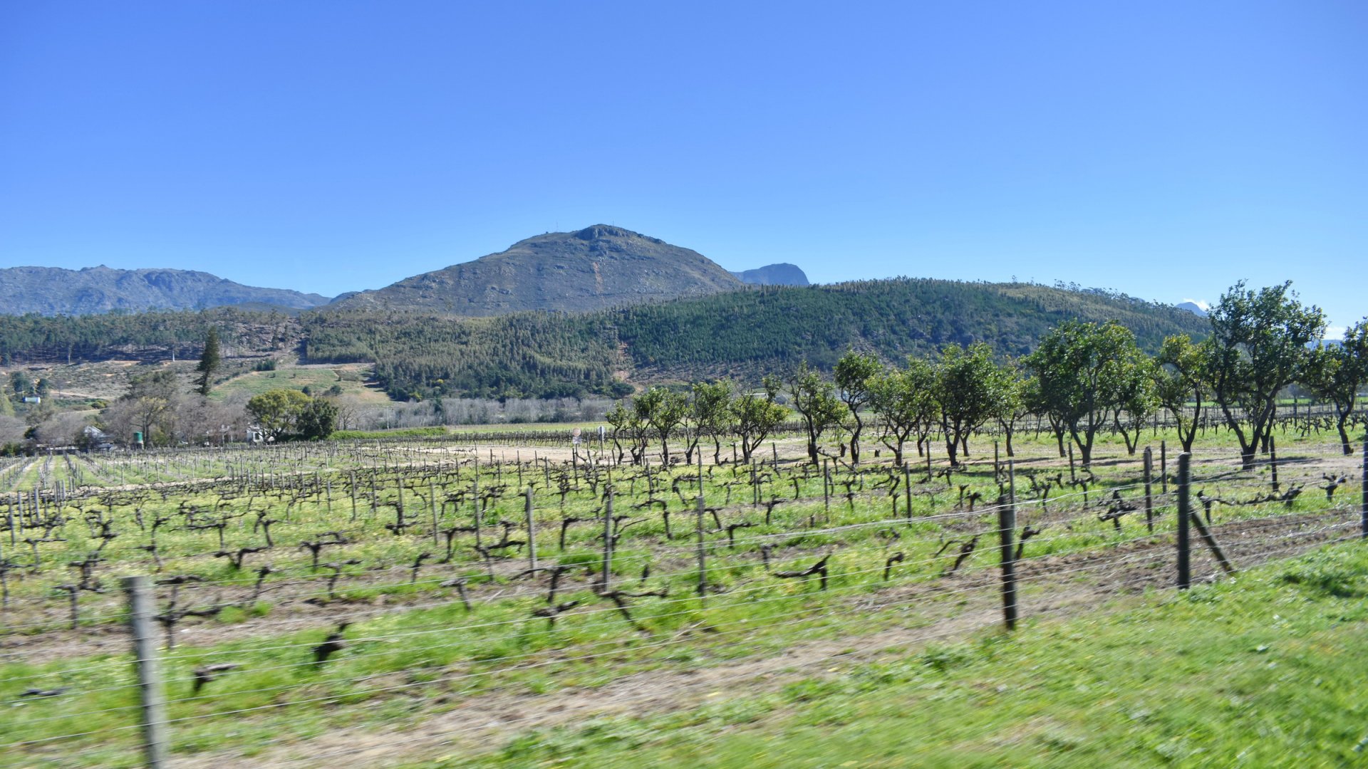 Ίδιο κι απαράλλαχτο το σκηνικό στο δρόμο του κρασιού του Ακρωτηρίου βγαλμένο θα ‘λεγε κανείς απ’ τα πιο αξιοζήλευτα οινολογικά όνειρα, σε μια απ’ τις ομορφότερες διαδρομές της χώρας. Μια κοιλάδα που κάθε λίγο και λιγάκι συναντούσες μπροστά σου ένα μικρό ή και μεγαλύτερο κτήμα με κάποια αγροικία Ολλανδικών/Γαλλικών στοιχείων ως αποκύημα της αποικιοκρατίας, πυκνή βλάστηση, καταπράσινα λιβάδια και αμπελώνες στους πρόποδες του βουνού. Ένας επίγειος παράδεισος!