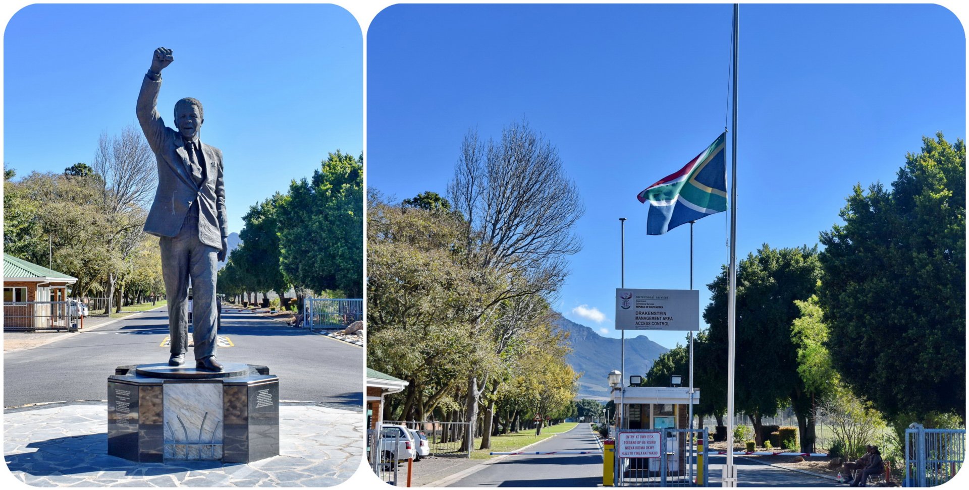 Η 40λεπτη πορεία μας διεκόπη προσωρινά για μερικές αναμνηστικές φωτογραφίες στο άγαλμα του Νέλσον Μαντέλα έξω από το σωφρονιστικό κατάστημα «Drakenstein» που αποτέλεσε και τον τελευταίο σταθμό της πολυετούς φυλάκισης του: