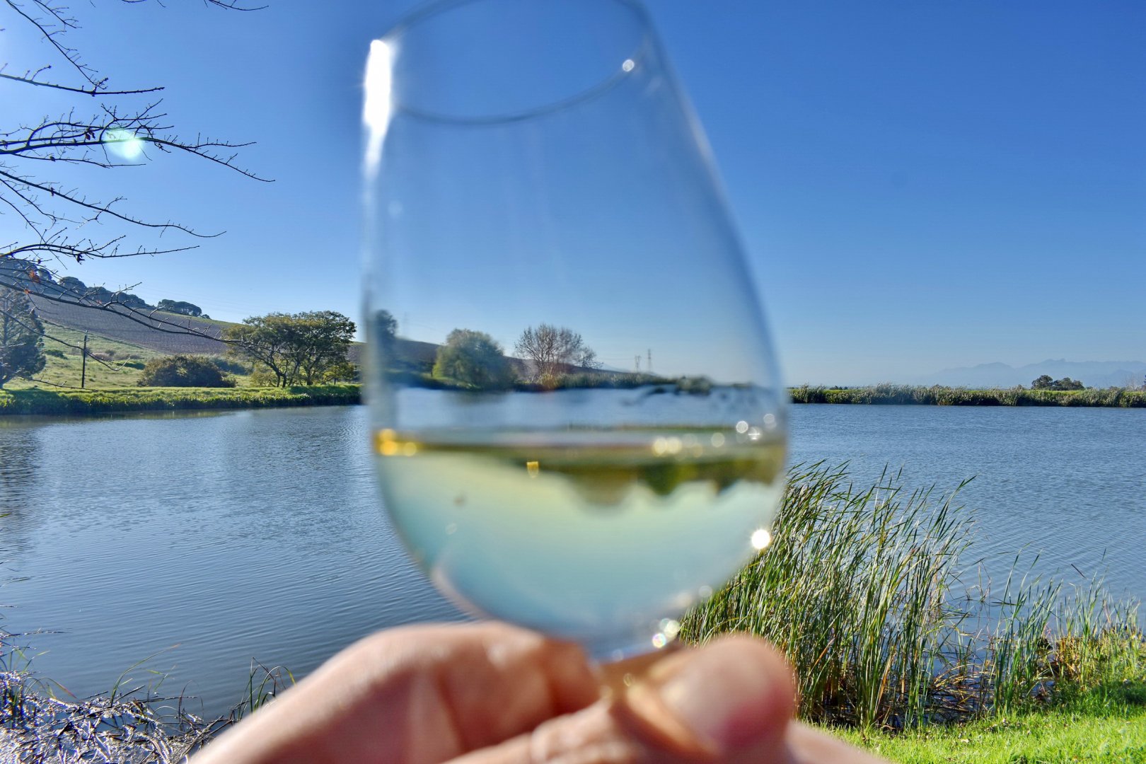 Παρέα μ’ ένα εξαιρετικό λευκό ανά χείρας κατηφορίσαμε μέχρι και τη μικρή λίμνη, με τον καιρό και τη θερμοκρασία της ημέρας να δίνουν τα ρέστα τους, επιστρέφοντας πρώτοι προς το οίκημα του οινοποιείου.