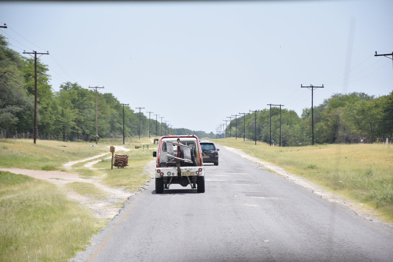 Φύγαμε λίγο μετά τις 10:00 από το λοτζ και κατευθυνθήκαμε νότια για να περάσουμε τα σύνορα Ναμίμπια-Μποτσουάνας. Η γραφειοκρατία ήταν ελάχιστη και πολύ σύντομα ήμασταν στην γειτονική χώρα, αφού δεν υπήρχε κανένας άλλος εκείνη την ώρα που να θέλει να περάσει τα σύνορα. Για την Μποτσουάνα δεν χρειάζεται ούτε βίζα, ούτε πληρώνεις κάτι. Μπαίνεις έτσι ως έλληνας χωρίς κανένα θέμα.
