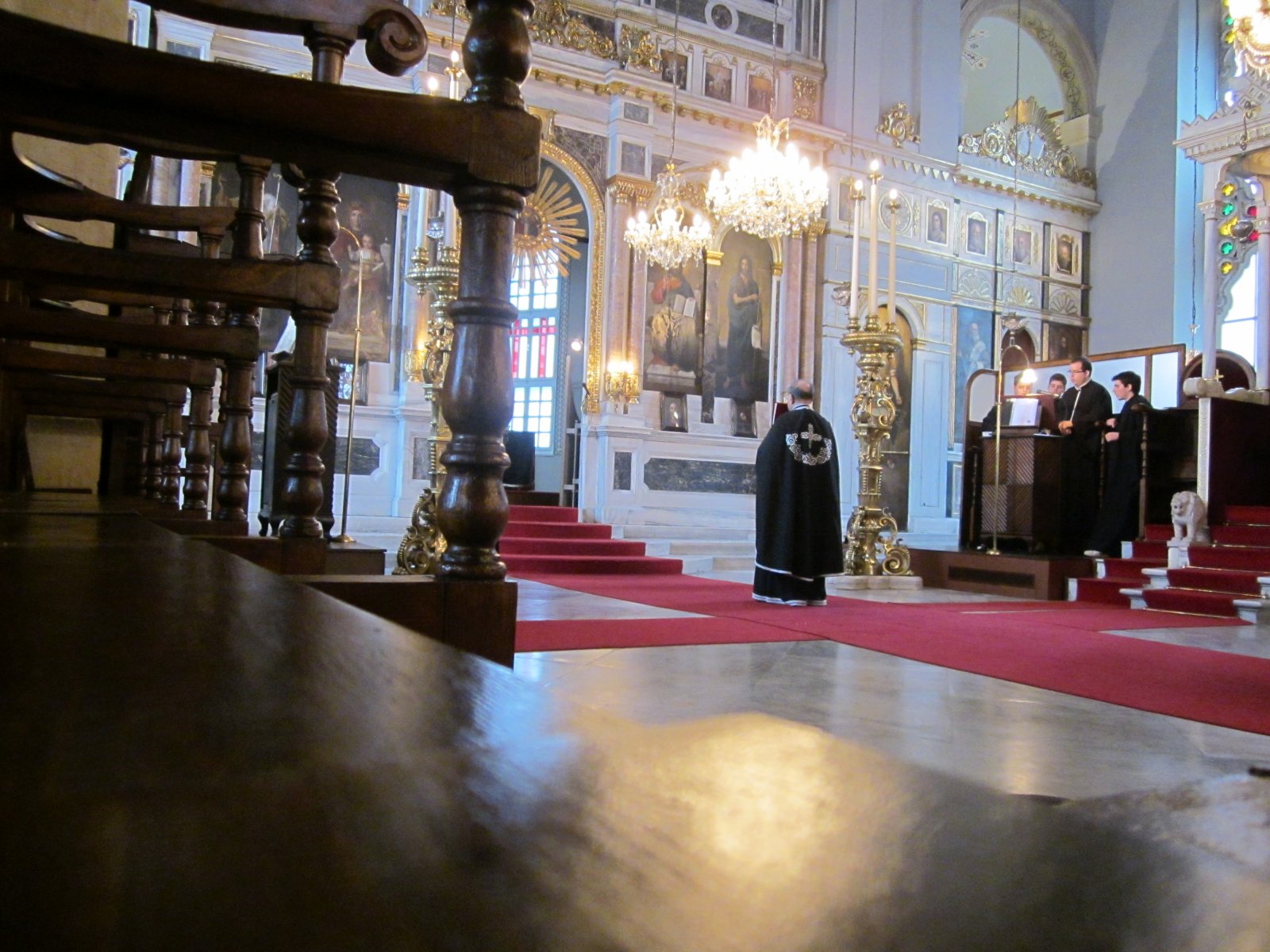 Δυστυχώς όμως ήταν κλειστή. Για την ακρίβεια πρέπει να είχε νωρίτερα λειτουργία και ο παπάς που λειτούργησε στο ναό της Αγίας Τριάδας πήγε στη συνέχεια και σε άλλη εκκλησία για λειτουργία. Ο παπάς πάει και λειτουργεί εκ περιτροπής στις εκκλησίες της Κωνσταντινούπολης. Στην Αγία Τριάδα θα είναι πάλι αύριο, Μ. Τρίτη πρωί, σύμφωνα με το αναρτημένο πρόγραμμα.