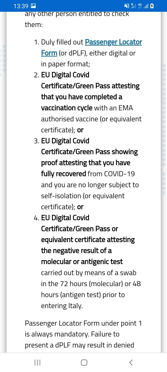Αυτό που γνωρίζω είναι πως ως ανεμβολίαστη πρέπει να μπει καραντίνα αλλά εκτός αυτού πρακτικά το μόνο που μπορείς να κάνεις στην Ιταλία χωρίς green pass είναι να περπατάς. Δεν μπορεί να καθήσει να φάει , να πιεί δεν μπορεί να μπει σε κανένα μουσείο. Ελέγχουν διαρκώς και απλά δεν μπαίνεις.