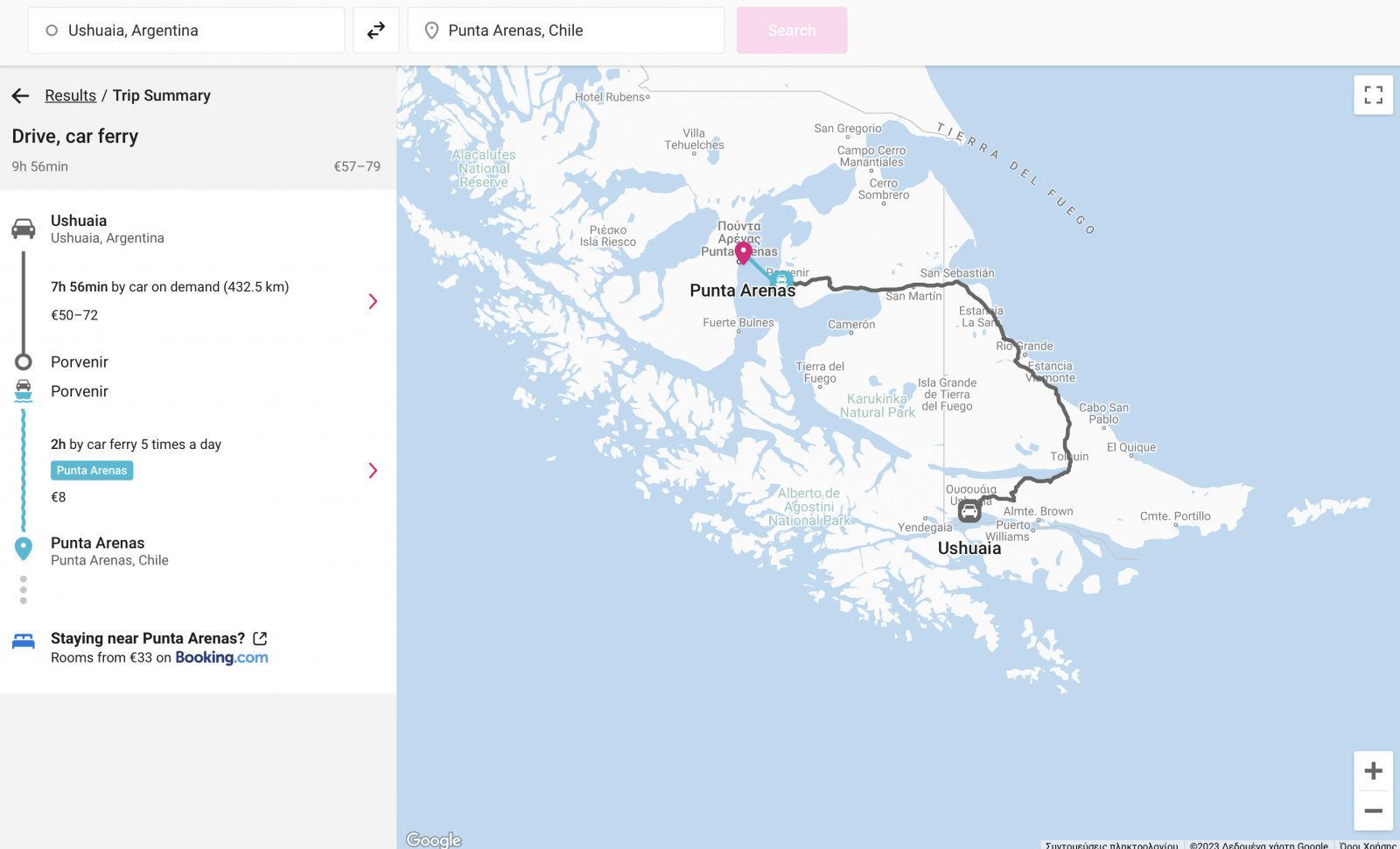 Είτε προς Καλαφάτε, είτε προς Punta Arenas/Puerto Natales, το πορθμείο δε το γλιτώνεις. Λόγω του ότι είναι Αύγουστος, ίσως φαίνεται καλύτερη επίλογη να πάρεις αεροπορικό προς El Calafate, να κάτσεις 2-3 μέρες και μετά να πας από εκεί με λεωφορείο για Puerto Natales που είναι ένα 5ωρο.