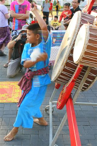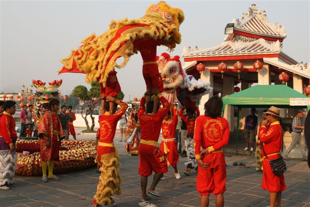 Έξω από τον ναό γίνονταν εκδηλώσεις για την κινεζική πρωτοχρονιά και παρακολουθήσαμε παραδοσιακούς κινέζικους χορούς με δράκους πριν κατευθυνθούμε προς τον ναό.