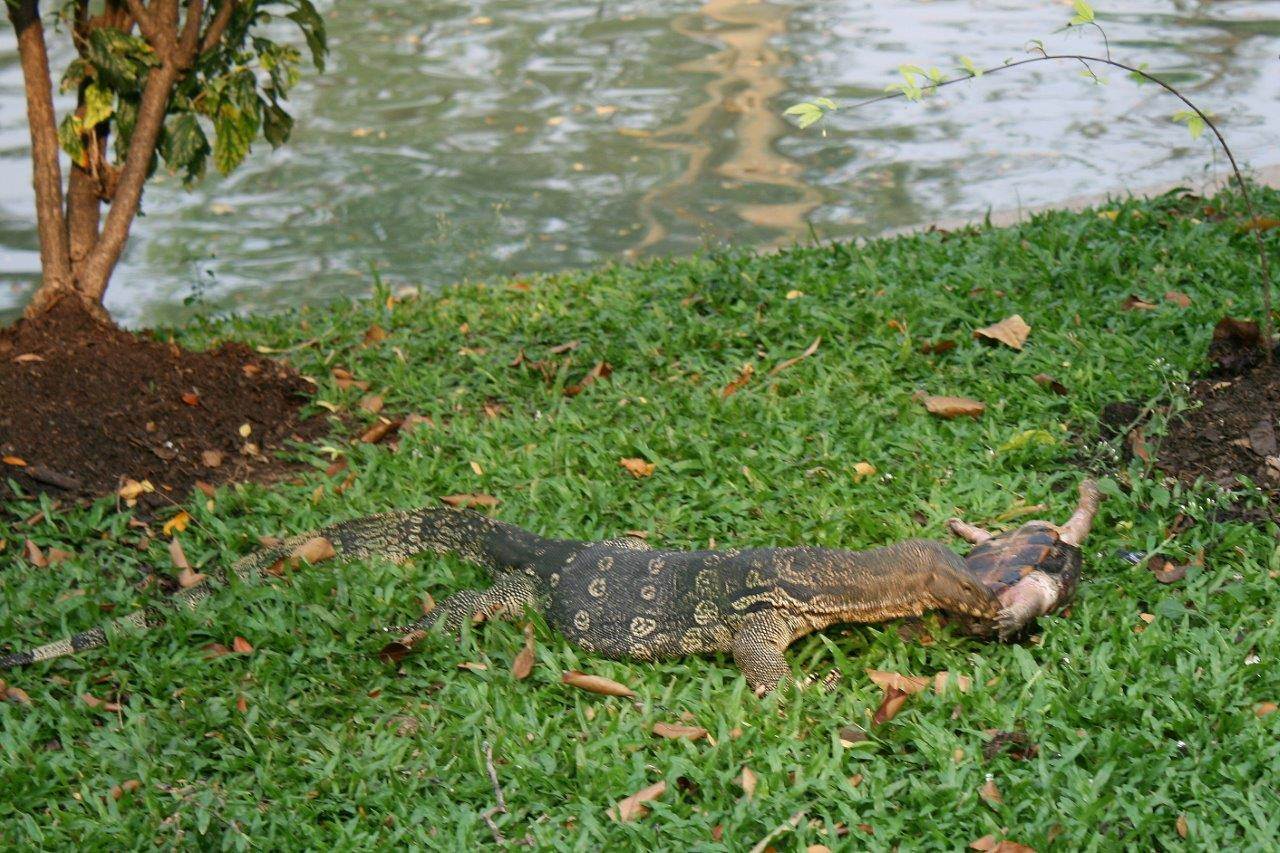 Η τεράστια σαύρα είχε αρπάξει από το λαιμό μια μεγαλούτσικη χελώνα και την είχε γυρίσει ανάποδα. Μετά συνέχισε αμέριμνη να τρώει με λαιμαργία την καημένη τη χελώνα. Κανόνας της φύσης θα μου πείτε αλλά το λυπήθηκα το καημένο το ζωντανό.