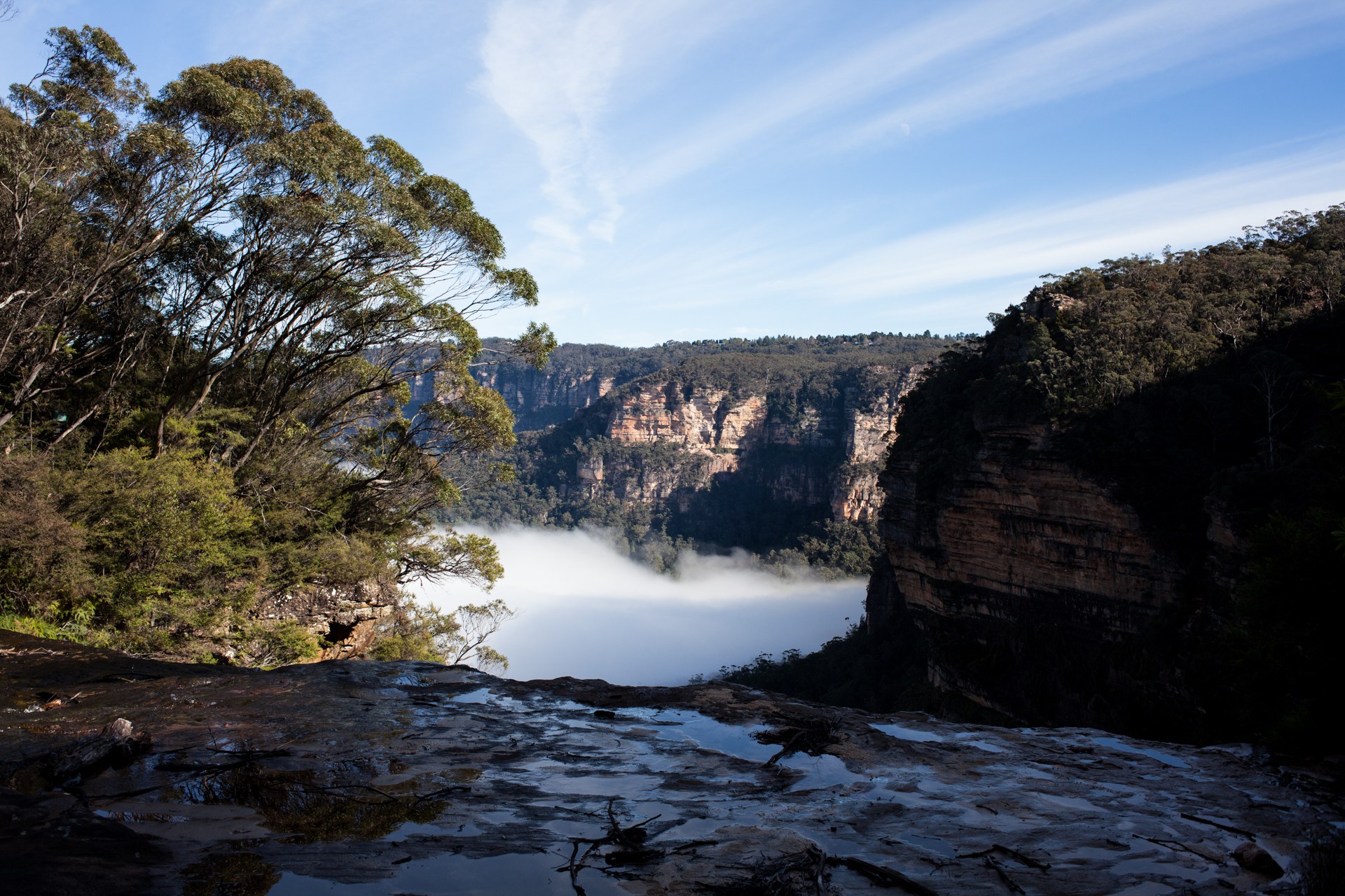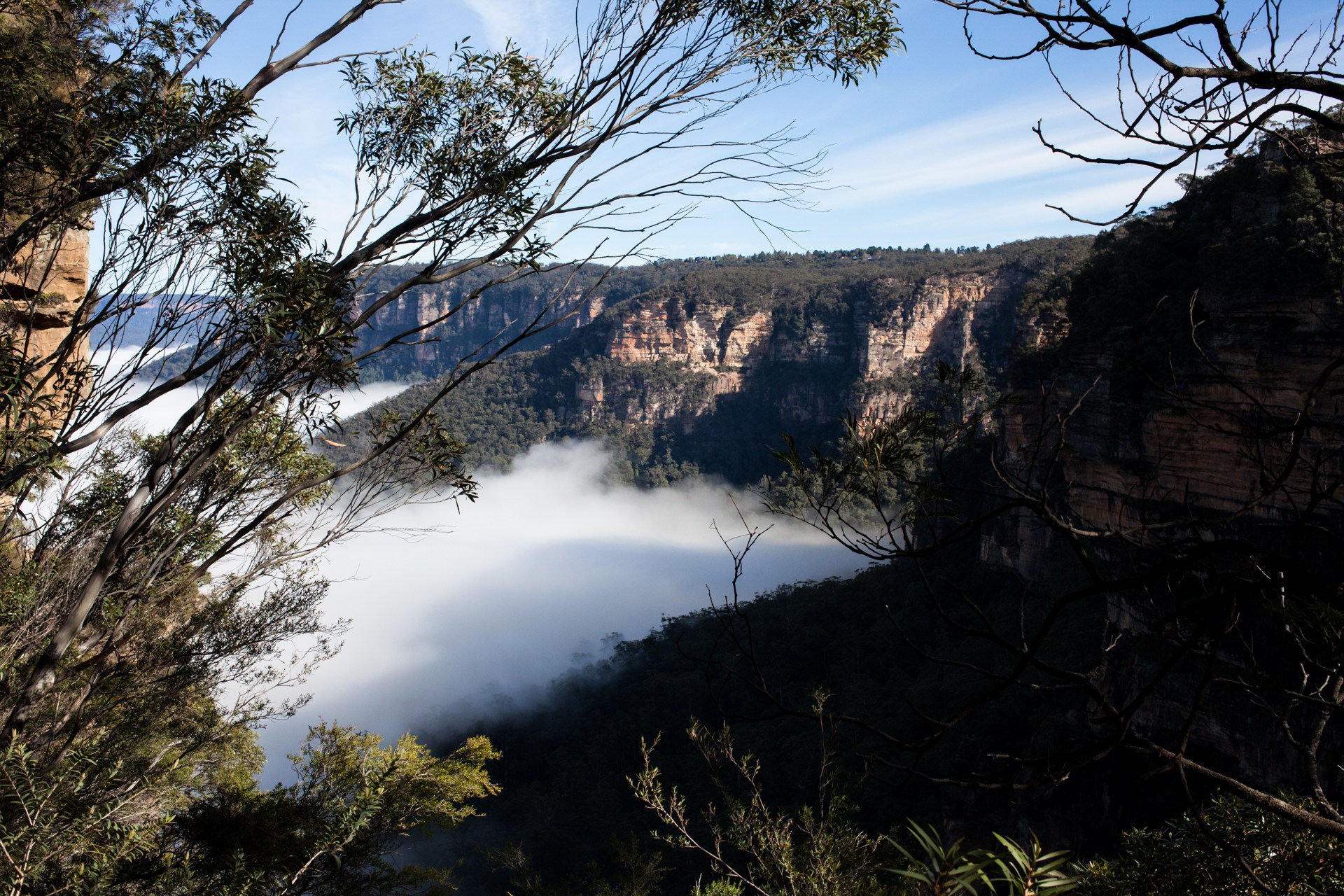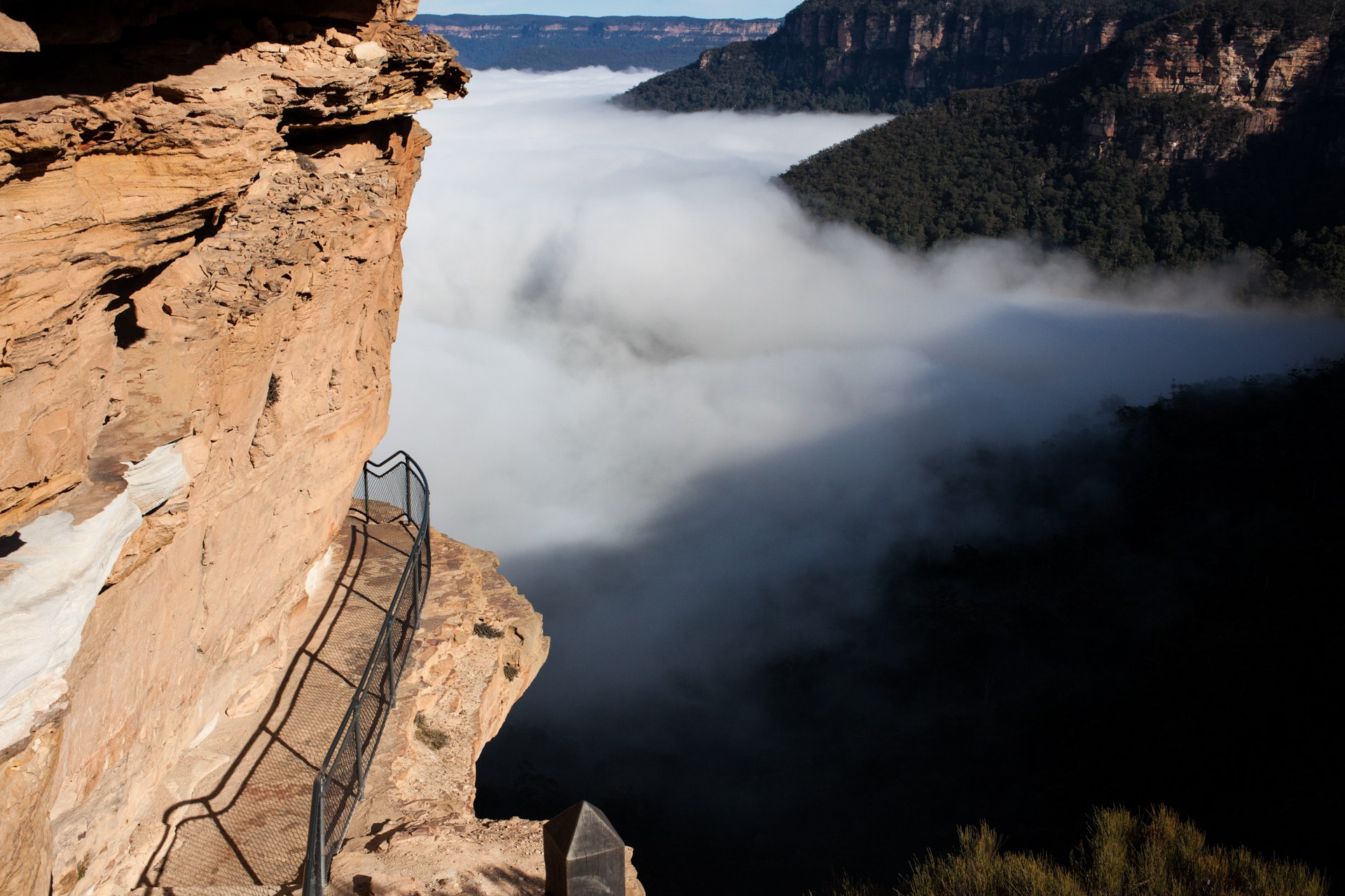 Λίγες μέρες πριν φύγω για Αυστραλία, μια φίλη με παίρνει τηλέφωνο και μου λέει ότι θα συναντήσει μια γνωστή της που έχει ζήσει στο Σύδνεϋ και θα μπορούσε να μου δώσει πληροφορίες για το ταξίδι. Χωρίς δεύτερη σκέψη πάω και η συζήτηση ξεκινά από τις λέξεις… “Blue Mountains”. Ανίδεος εγώ, νοιώθω το σαγόνι μου να κρεμάει όταν μαθαίνω ότι τα Blue Mountains είναι μια περιοχή κοντά στο Σύδνεϋ με ένα αρχαίο δάσος ευκαλύπτων που λέγεται έτσι γιατί ανάλογα με την εποχή, τη ζέστη και την υγρασία αφήνει στην ατμόσφαιρα τριγύρω ένα χαρακτηριστικό κυανό χρώμα. Αδυνατώ να φέρω στη μνήμη μου οτιδήποτε άλλο από αυτή τη συζήτηση. Το μυαλό μου είχε κολλήσει εκεί και η φαντασία μου οργίαζε στη σκέψη ότι θα μπορούσα να το δω από κοντά.