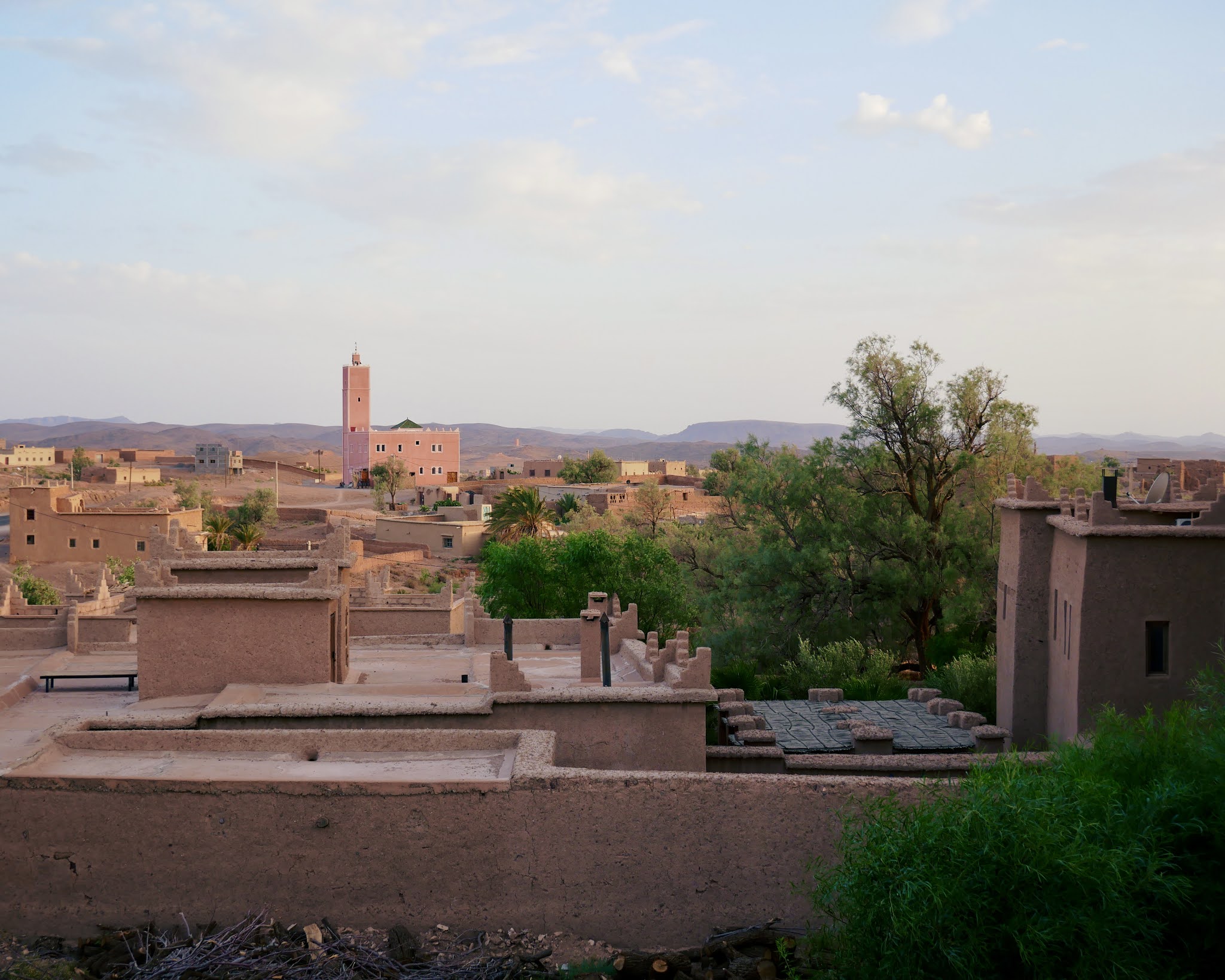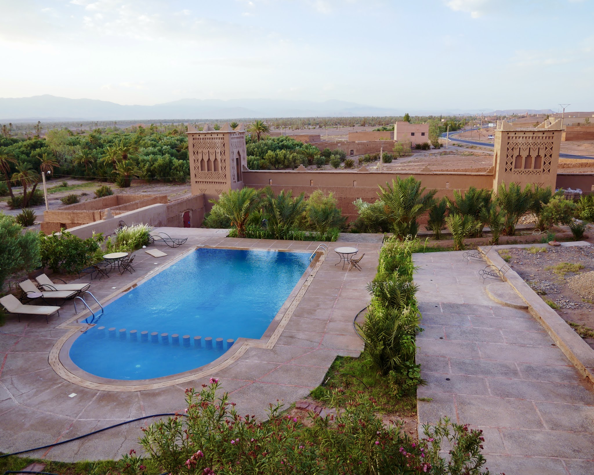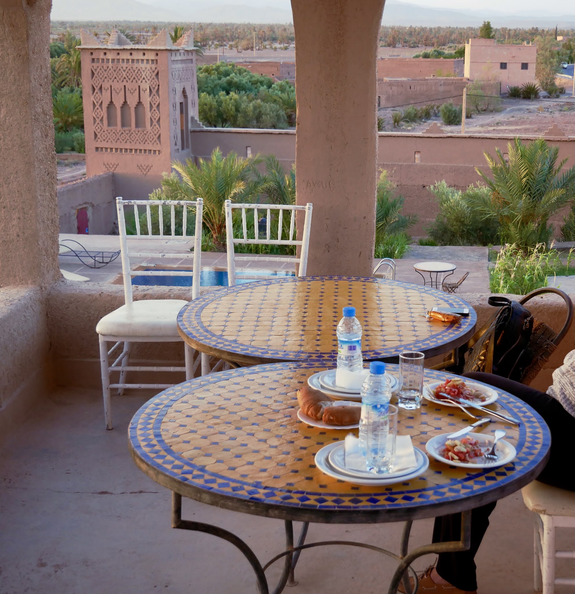 Από το Ouarzazate προς την όαση της Skoura ήταν μόνο τριάντα εννέα τα χιλιόμετρα και διανύθηκαν γρήγορα. Ξαφνικά σταματήσαμε στην άκρη του δρόμου για μια αναστροφή (είμασταν απορροφημένοι και το προσπεράσαμε) το Kasbah Ait Ben Moro που ήταν και το κατάλυμά μας, πολύ κοντά στην όαση της Skoura.