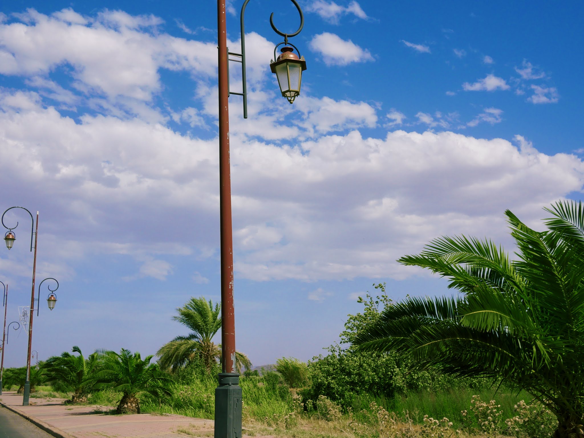 Ο δρόμος καλοχαραγμένος και κυρίως άδειος ελίσσεται ανάμεσα σε μικρούς οικισμούς και οάσεις, με τον ήλιο να χάνεται πότε-πότε μέσα στα σύννεφα που πληθαίνουν στον ορίζοντα χωρίς να μας δείχνουν άγριες διαθέσεις.