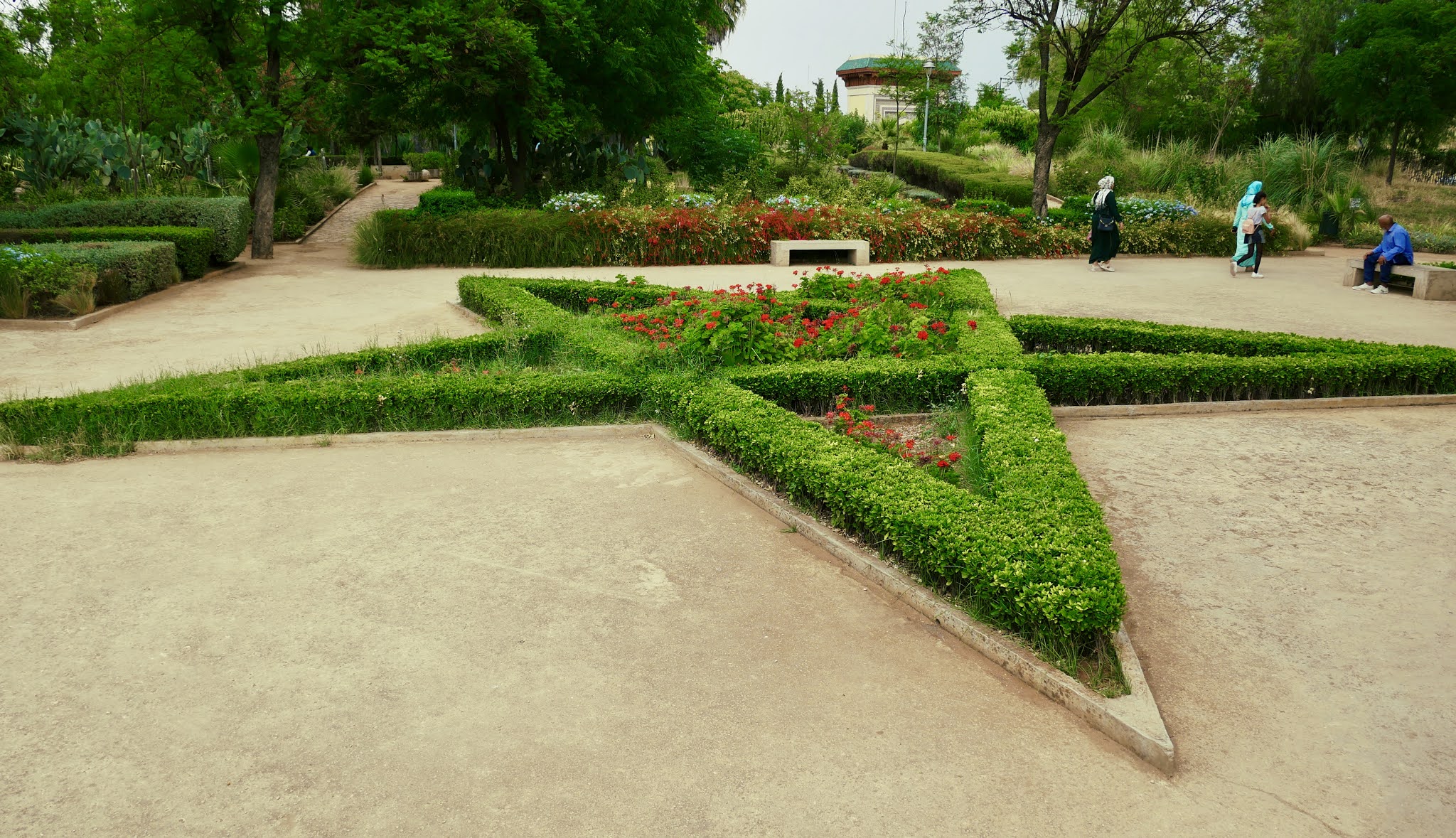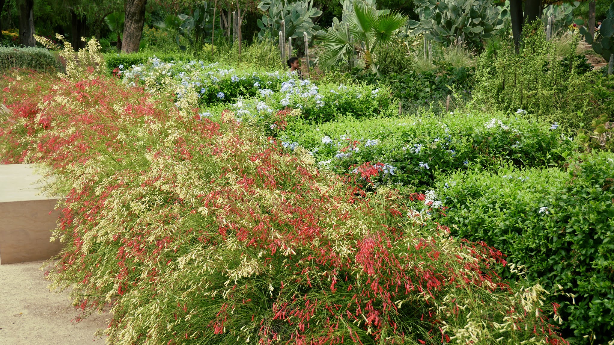 Πολλοί πανύψηλοι φοίνικες και λεύκες και τριανταφυλιες και ..., και .., και μια λίμνη στη νότια πλευρά μαζί με το αριστοτεχνικά κρυμμένο Café La Noria συνθέτουν ένα καλόγουστο, λειτουργικό και ομοιογενές περιβάλον.