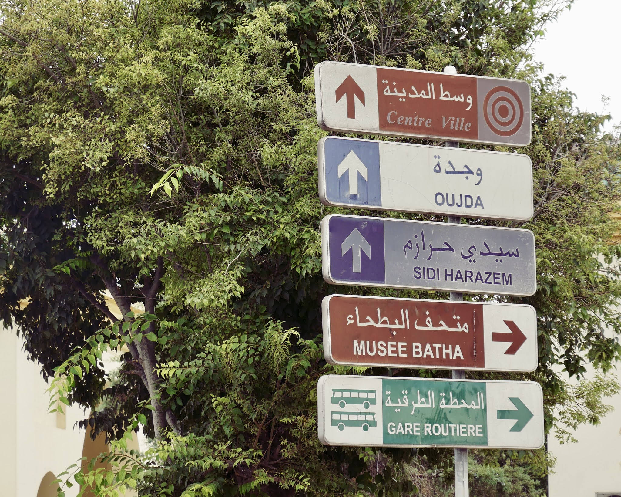 Ένα από τα παραπάνω βέλη της καθοδηγητικής πινακίδας δείχνει προς το Musée Batha που είναι ένα πρώην Αραβο-Ανδαλουσιανό παλάτι, (μια πλουσιοκατοικία τύπου ριάντ σαν αυτές που άνθισαν στην πόλη στα τέλη του 19ου αιώνα. και τις αρχές του 20ου αιώνα).