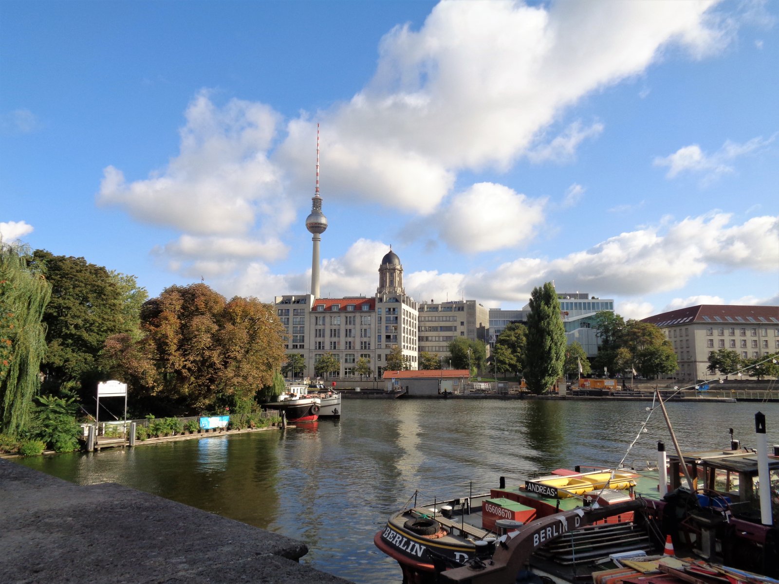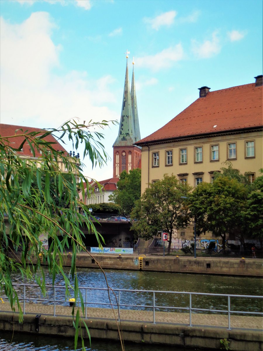 Σαντουιτσάκι με Γερμανικό σαλάμι και χυμός πορτοκάλι στο χέρι, λοιπόν, και διασχίζοντας την οδό Wallstraße, όπου βρίσκεται το ξενοδοχείο και ο ομώνυμος σταθμός του υπογείου, βρέθηκα σύντομα να περπατώ κάτω από τις ιτιές και τα σφενδάμια της όχθης του Spree.
