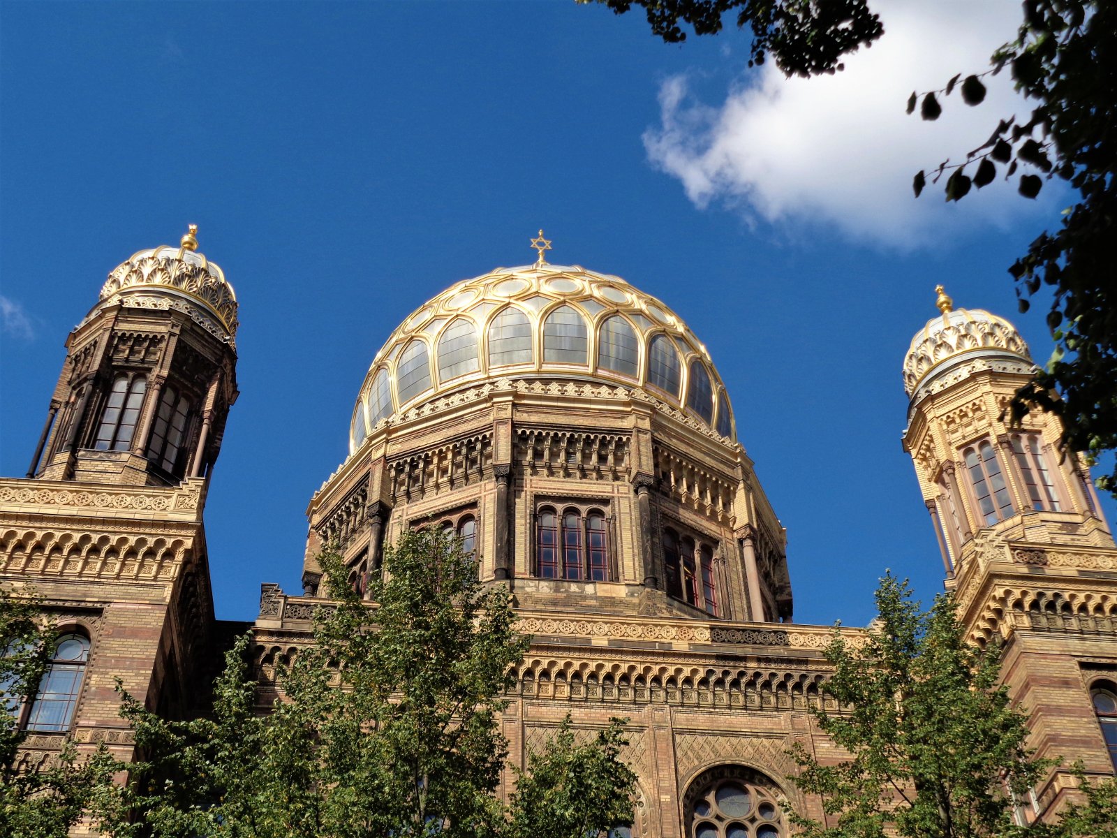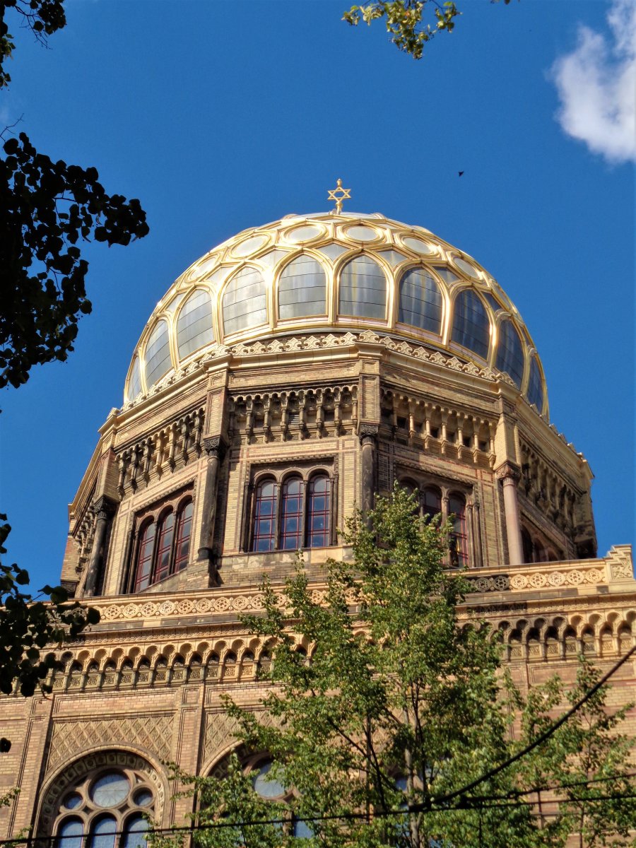 Φεύγοντας από το Μουσείο Φυσικής Ιστορίας μπορείτε να κατευθυνθείτε πίσω στις όχθες του Spree, όπου μία βόλτα κατά μήκος τους μέχρι τον μεγάλο Σταθμό της Friedrichstraße είναι ιδιαίτερα ευχάριστη, χαζεύοντας τα ποταμόπλοια με τους τουρίστες και απολαμβάνοντας μία μπύρα στα μαγαζάκια που θα συναντήσετε. Εγώ προτίμησα να λοξοδρομήσω στην οδό Oranienburger Straße, και αφού περάσω μπροστά από το Αυτοκρατορικό Ταχυδρομείο (Kaiserliches Postfuhramt) να προχωρήσω προς τη μεγάλη Νέα Συναγωγή του Βερολίνου (Neue Synagogue) με τους χρυσοποίκιλτους τρούλους (εμπνευσμένους από το ανάκτορο της Αλάμπρα στην Ισπανία), κτήριο εντυπωσιακό όσο και ιστορικό.